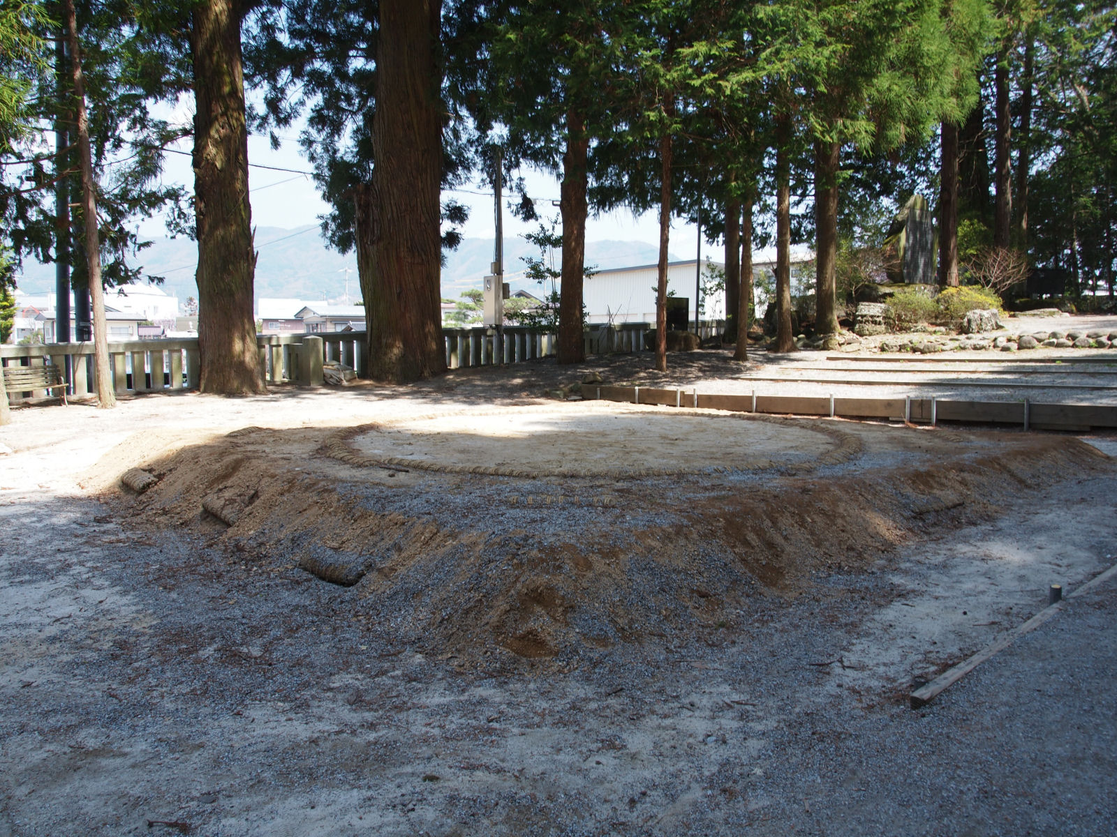 雷電為右衛門の像と土俵.