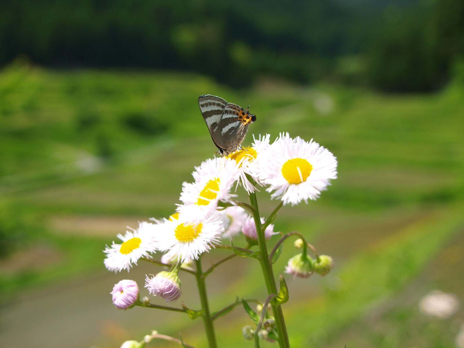 | 棚田の傍には,春らしく小さな花が鮮やかに咲いていました. |