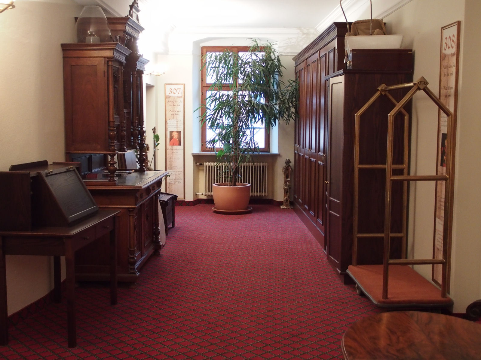 1390年創業とインスブルックで最も老舗のホテル,ゴルデナーアドラーです. ゲーテなどの偉人も宿泊したそうです. 格調高い家具や剥製,芸術家の絵画があったりと,内装がとても豪華でした.