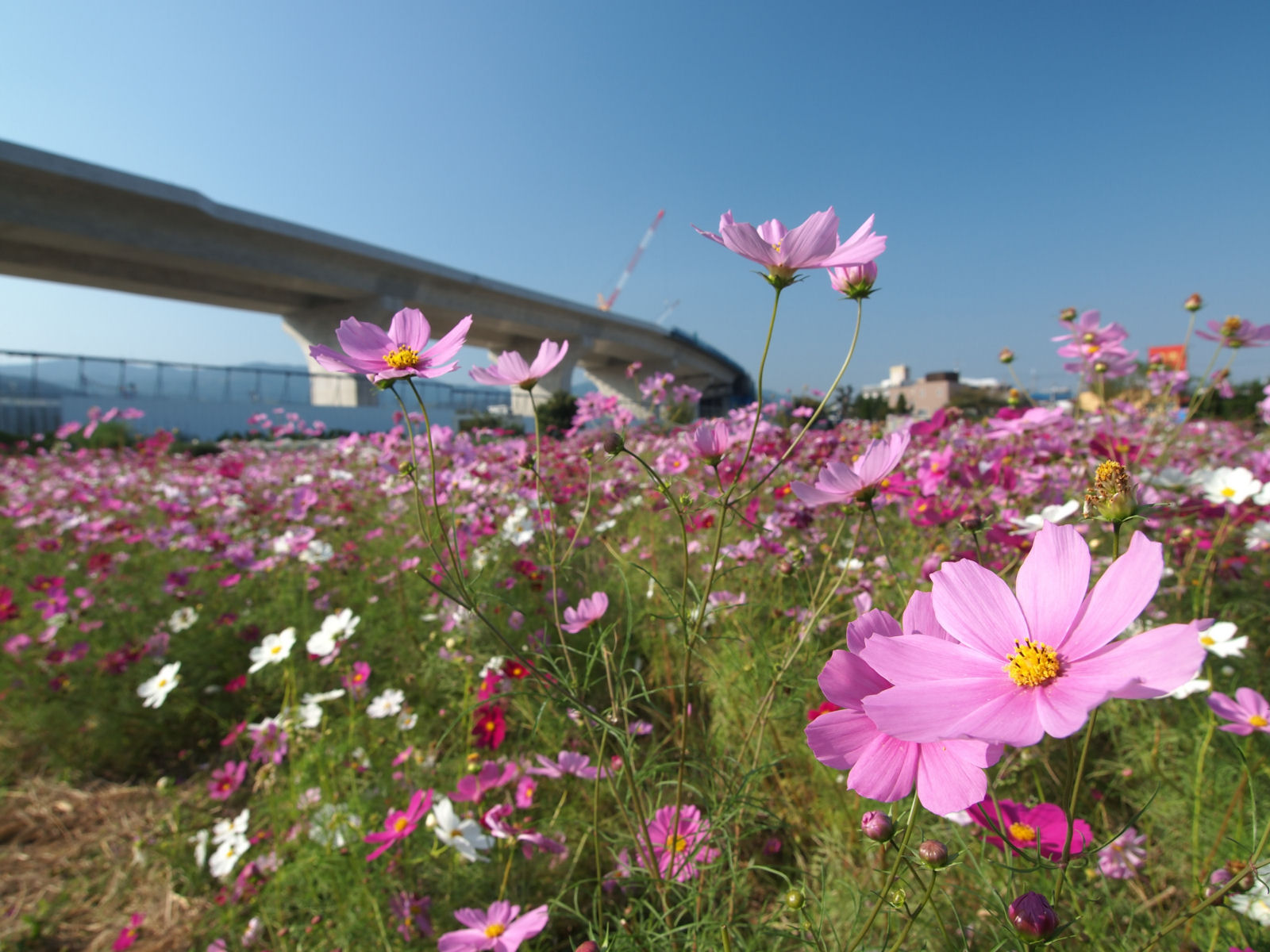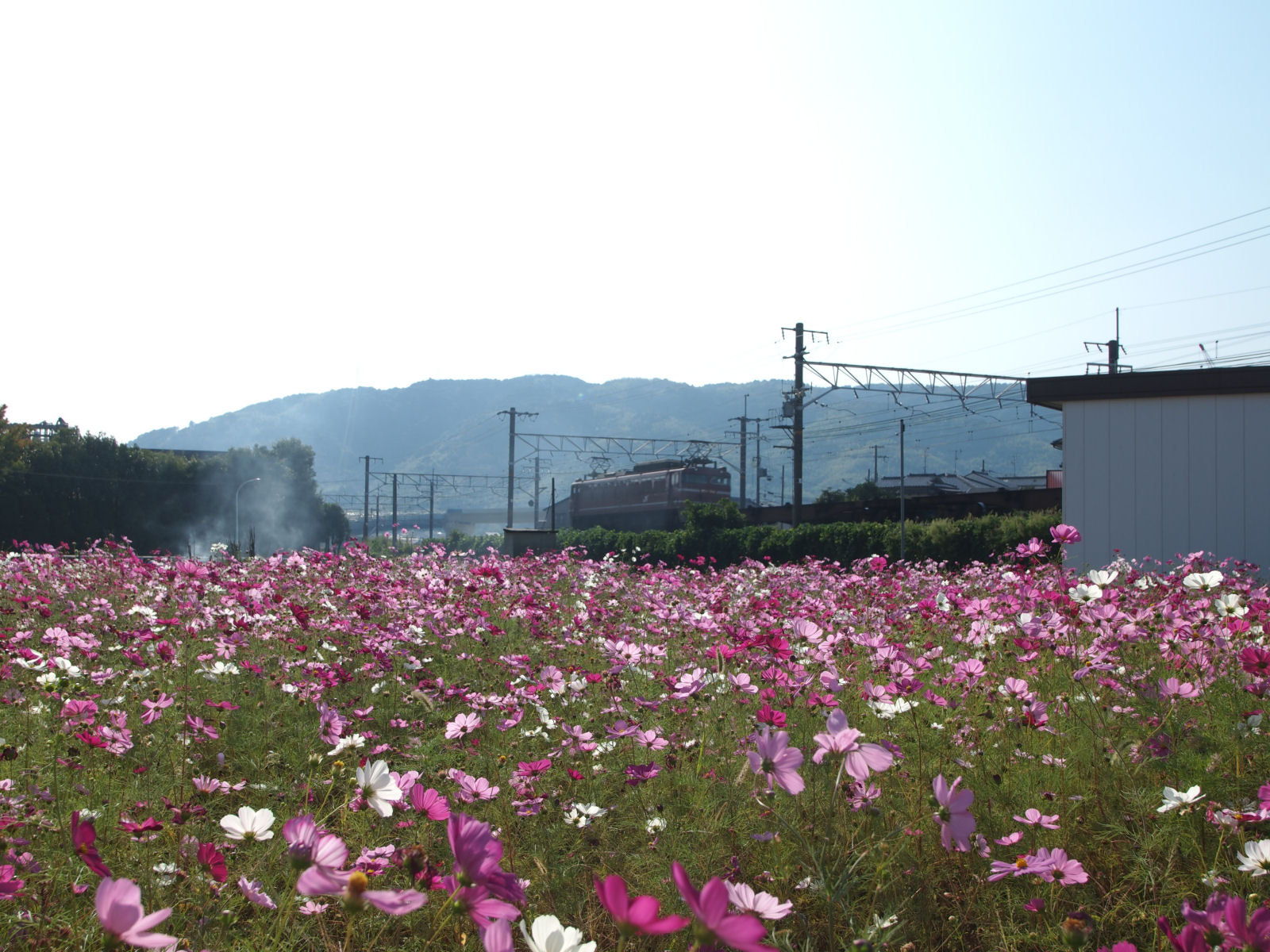調子踏切そばのコスモス畑.