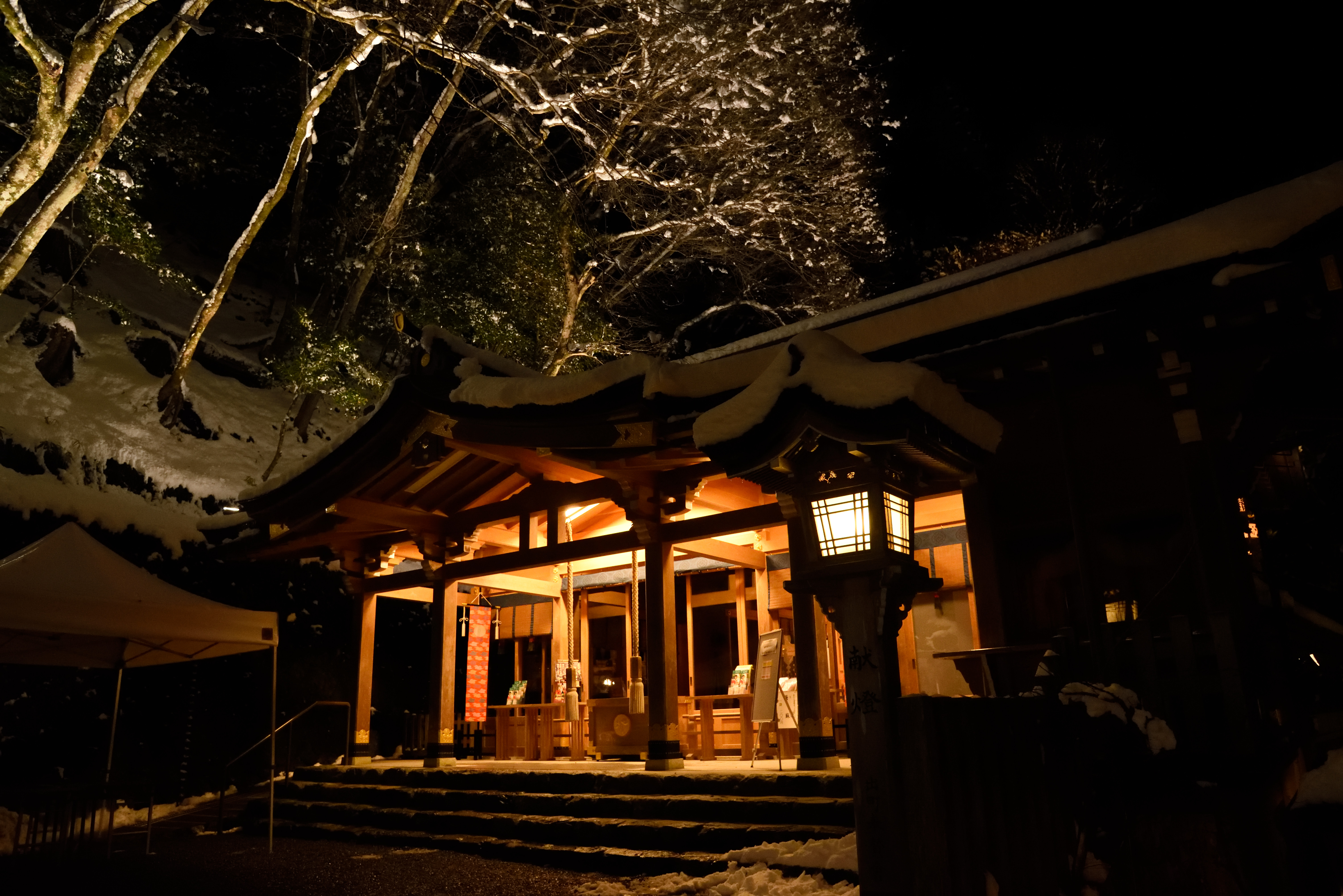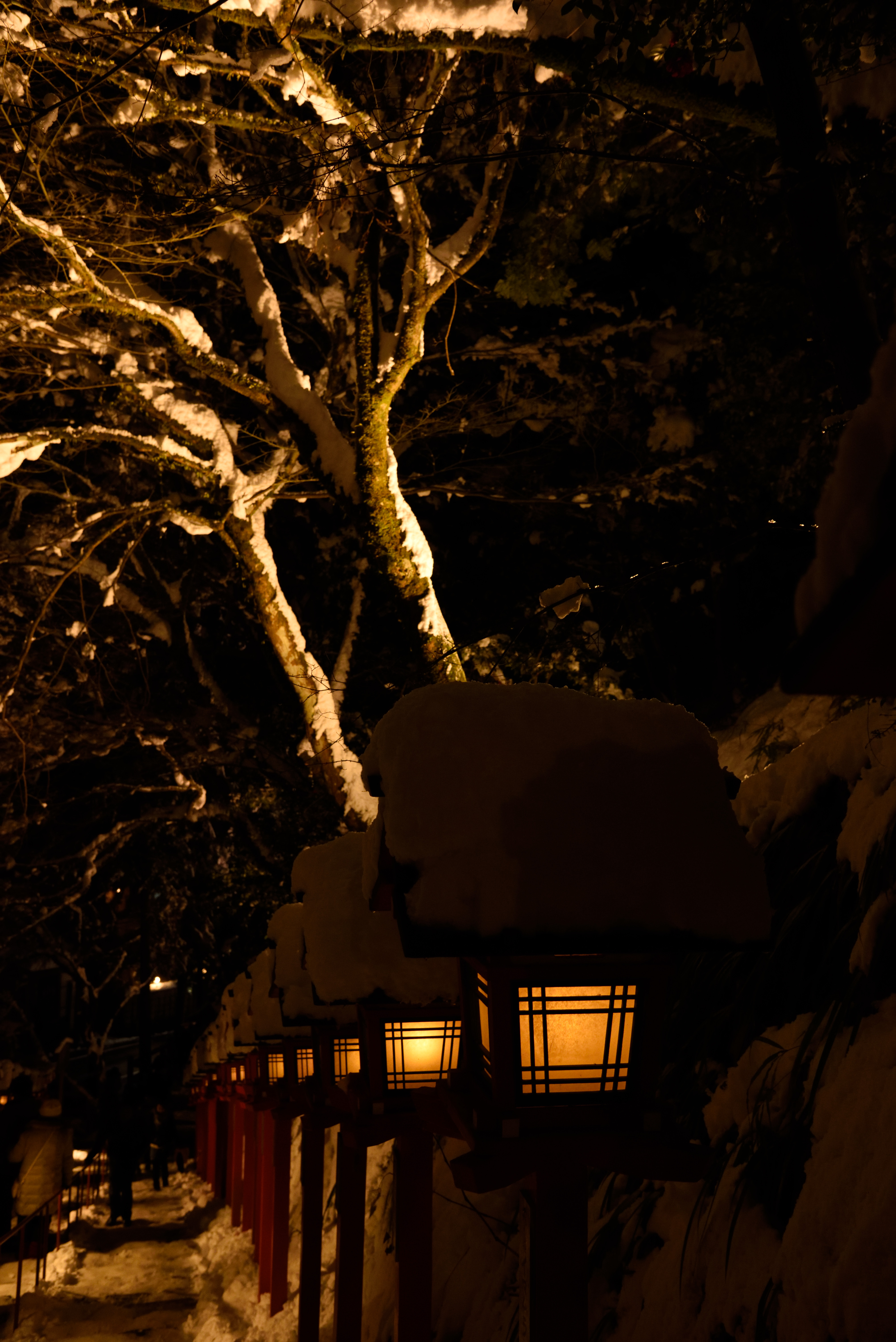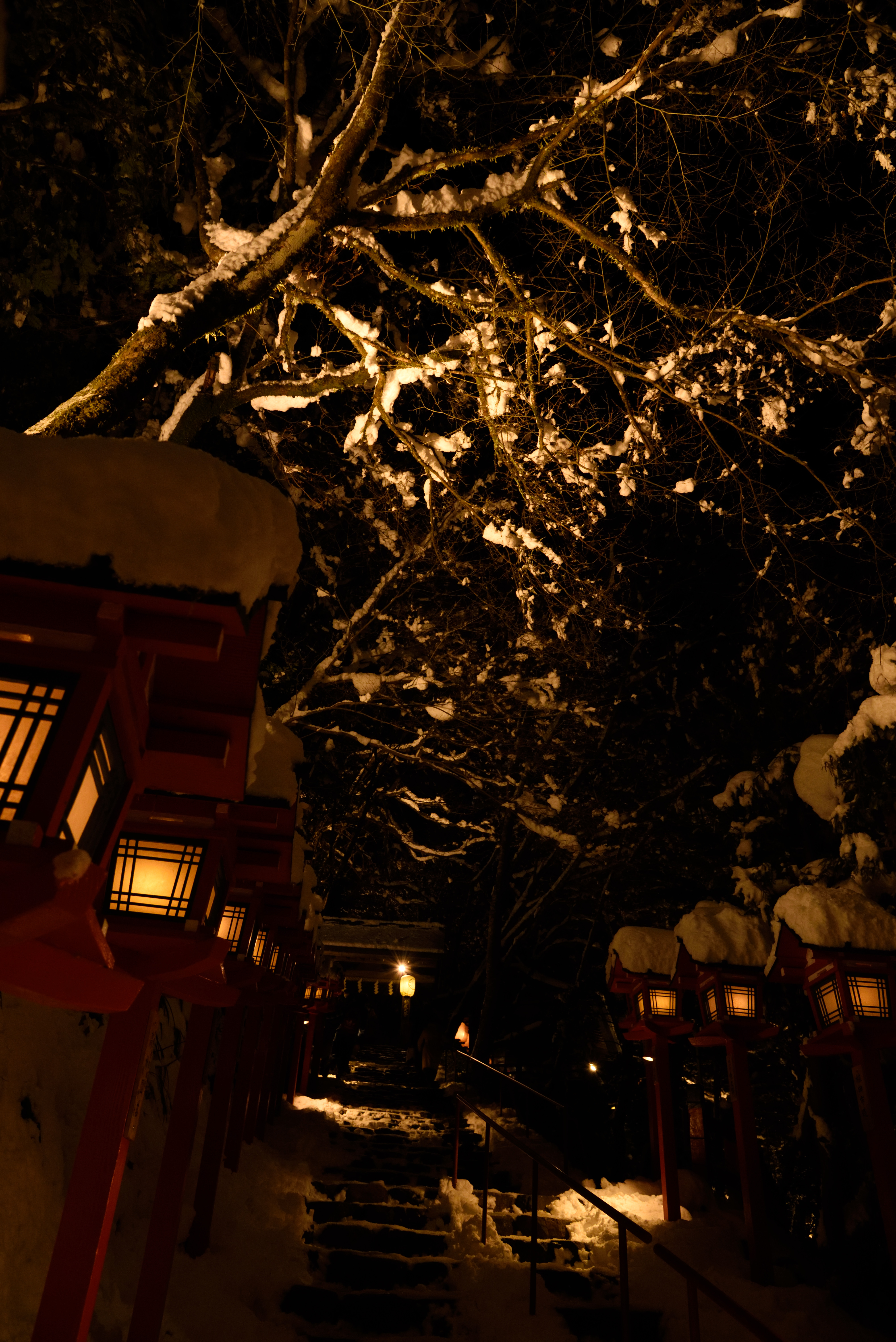 貴船神社付近の宿や店は特別ライトアップしているわけではないと思いますが, こちらは奥宮. ライトアップは本宮のみですが,奥宮も明かりはありました. |