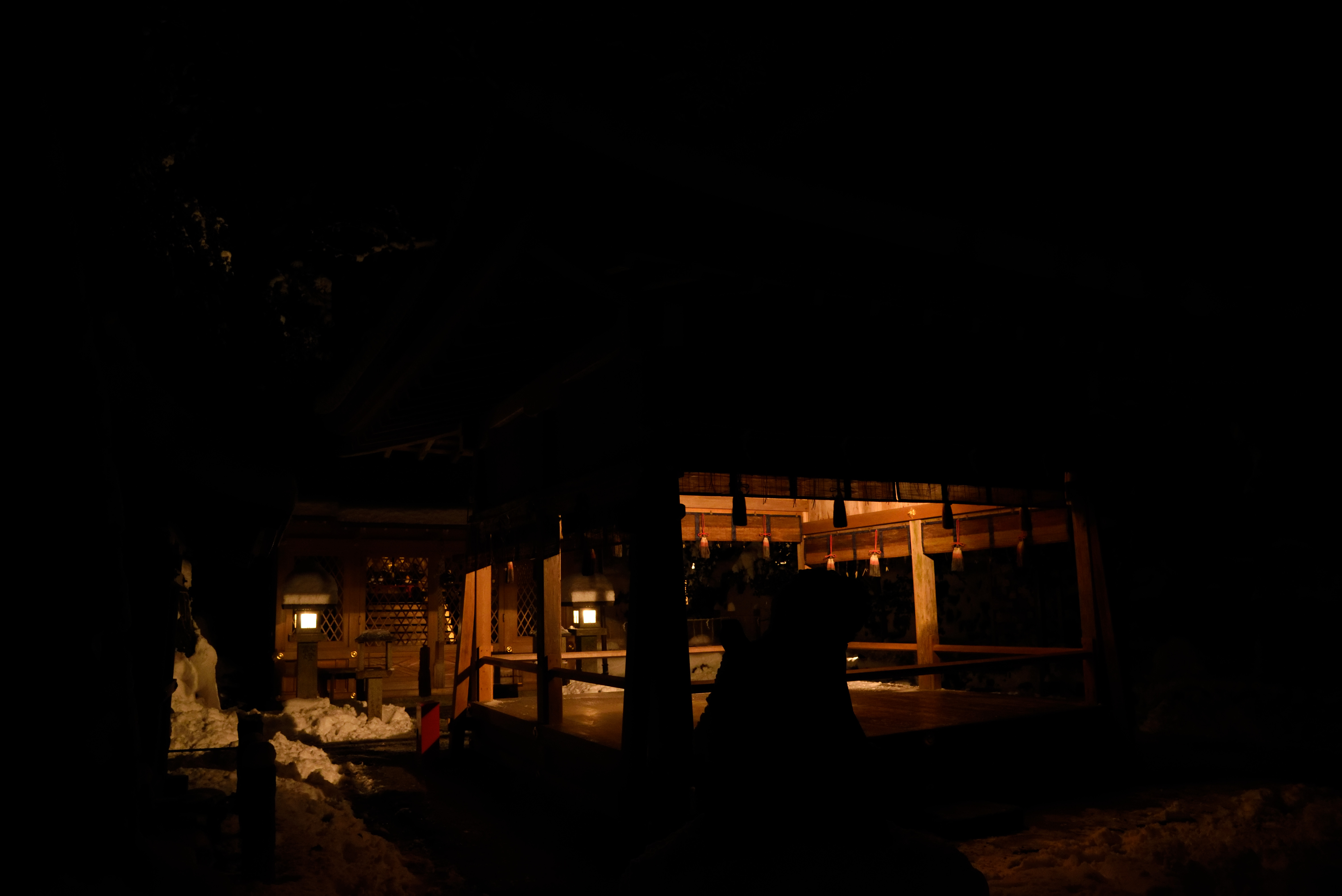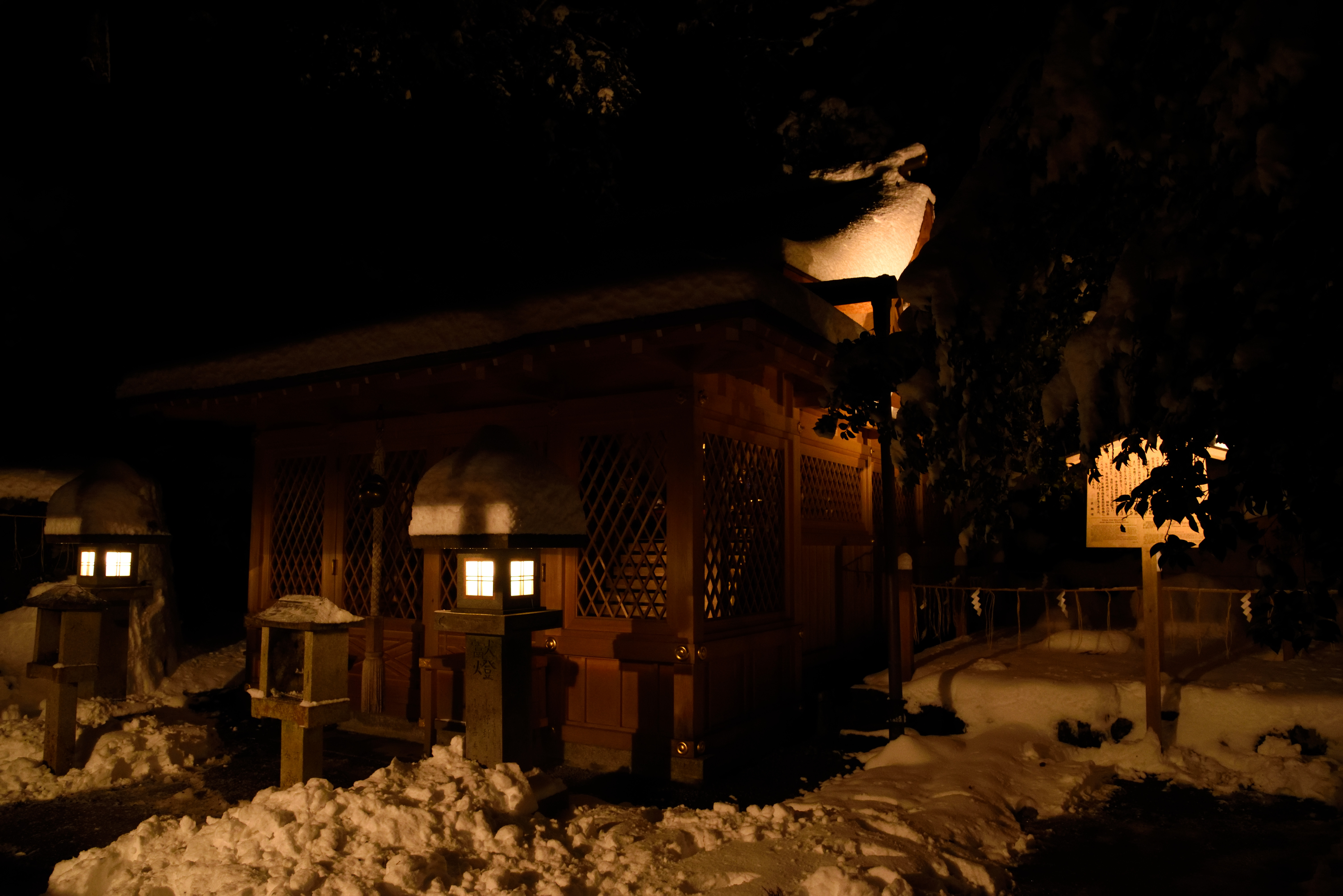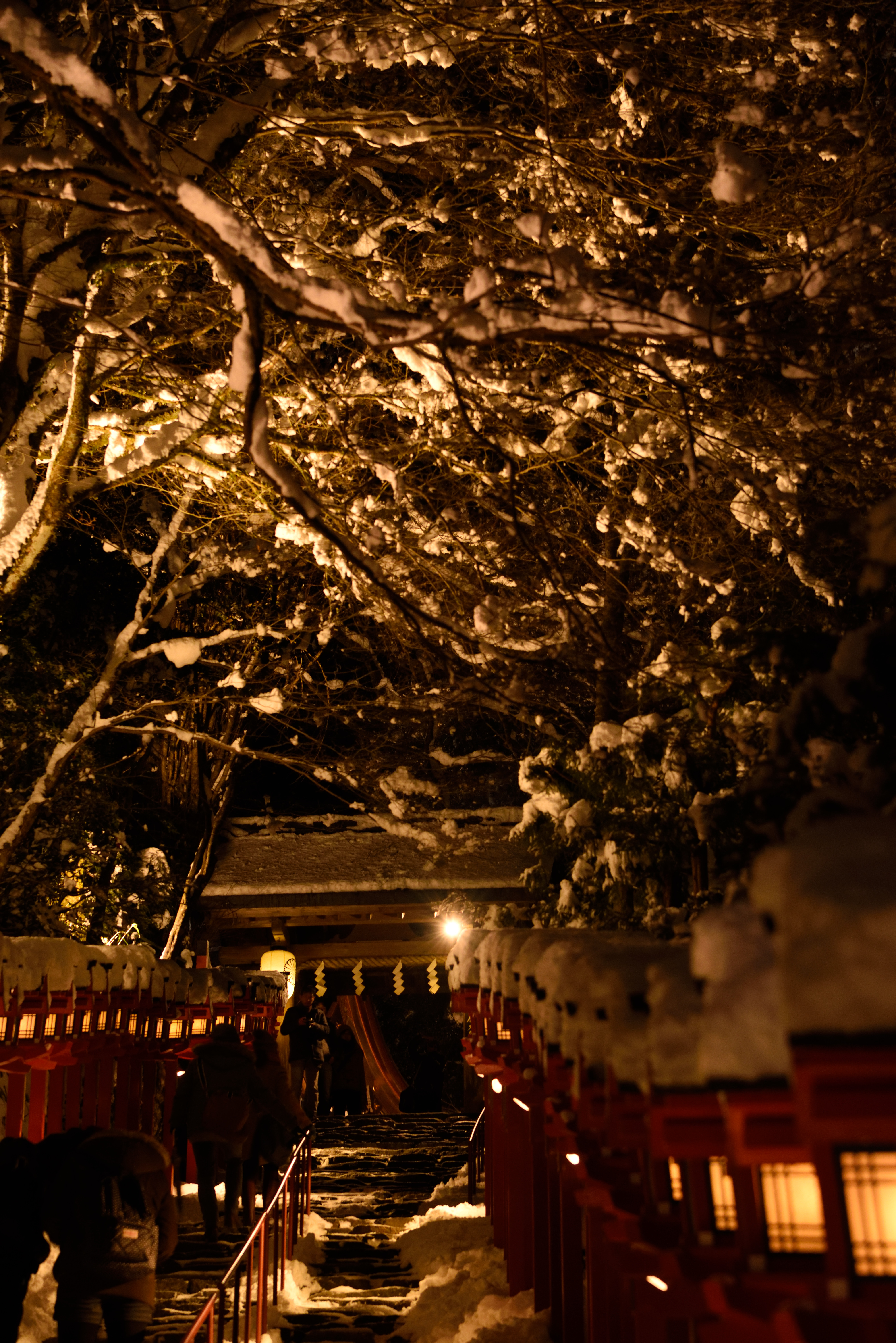 貴船神社付近の宿や店は特別ライトアップしているわけではないと思いますが, こちらは奥宮. ライトアップは本宮のみですが,奥宮も明かりはありました. |