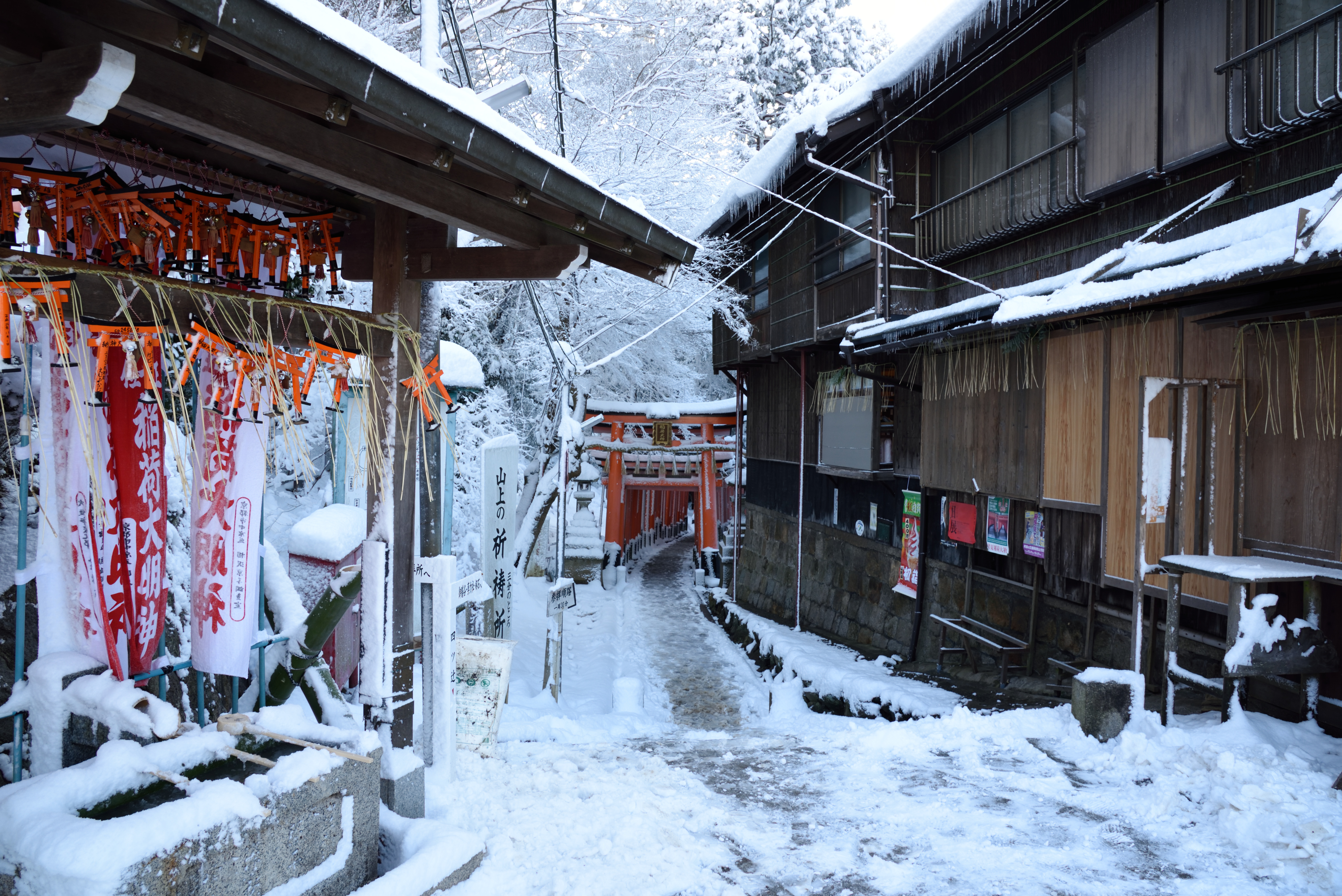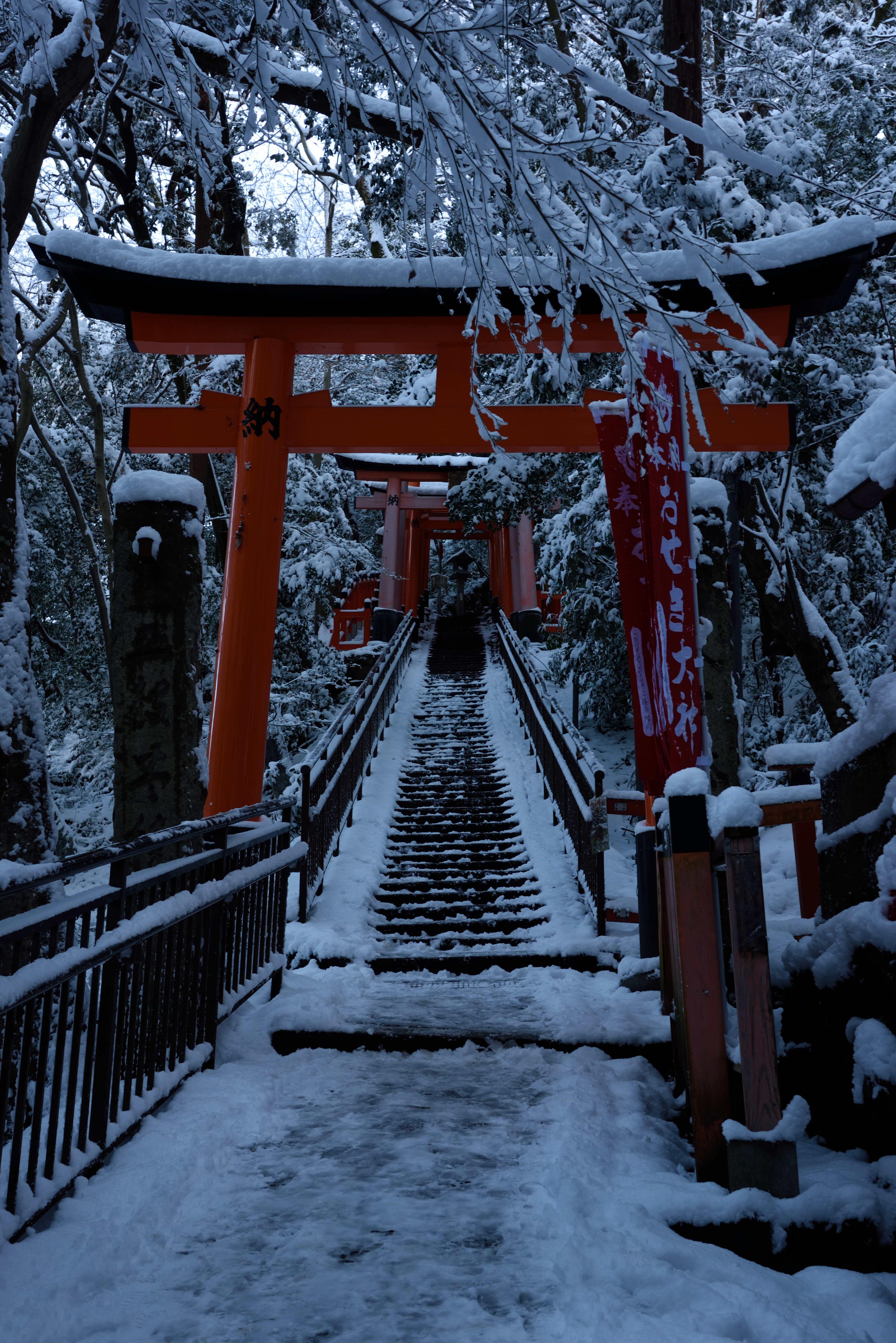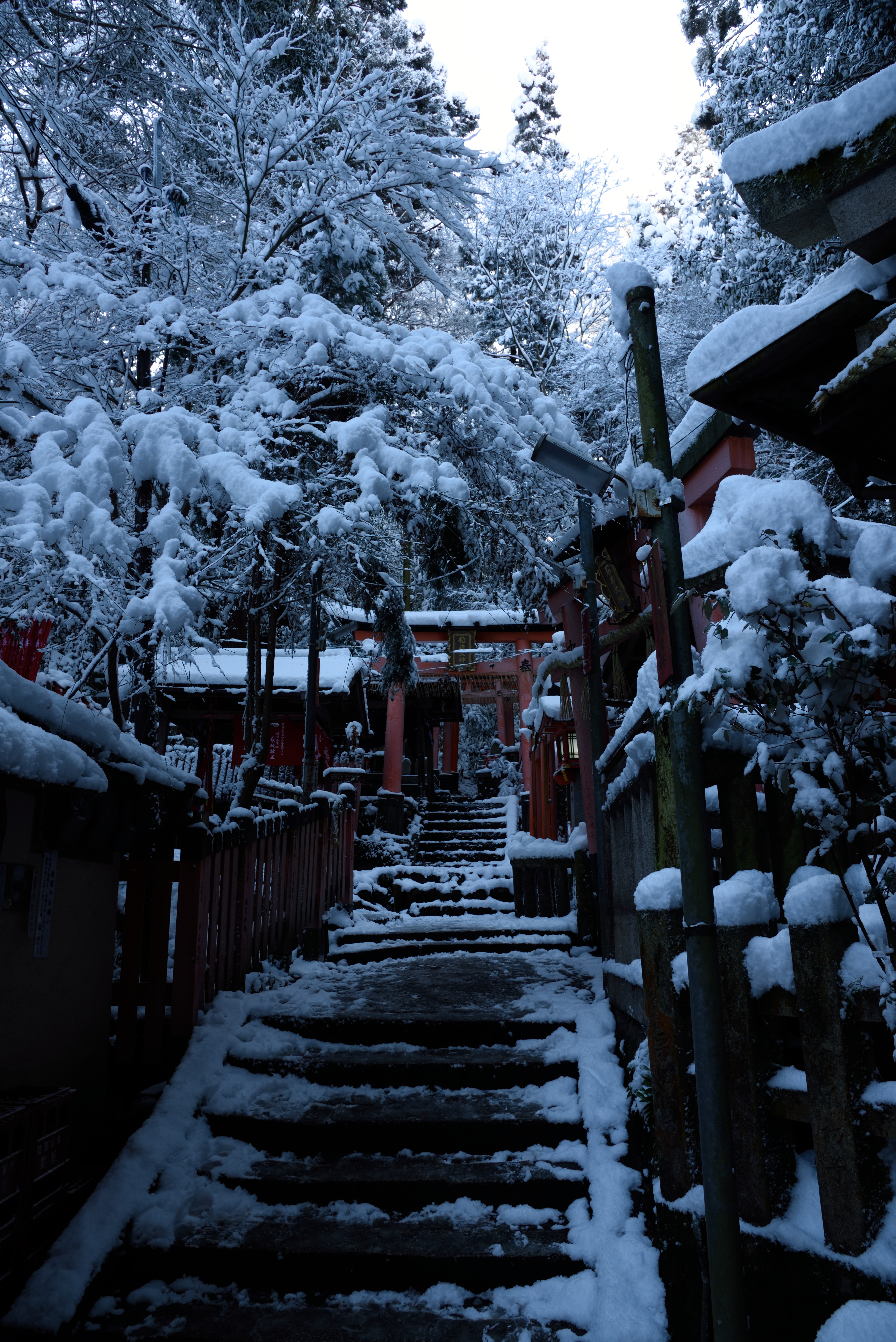 | 四ツ辻から上の方は参道にも雪が残っていて,雪景色と言える光景が見られました.. |