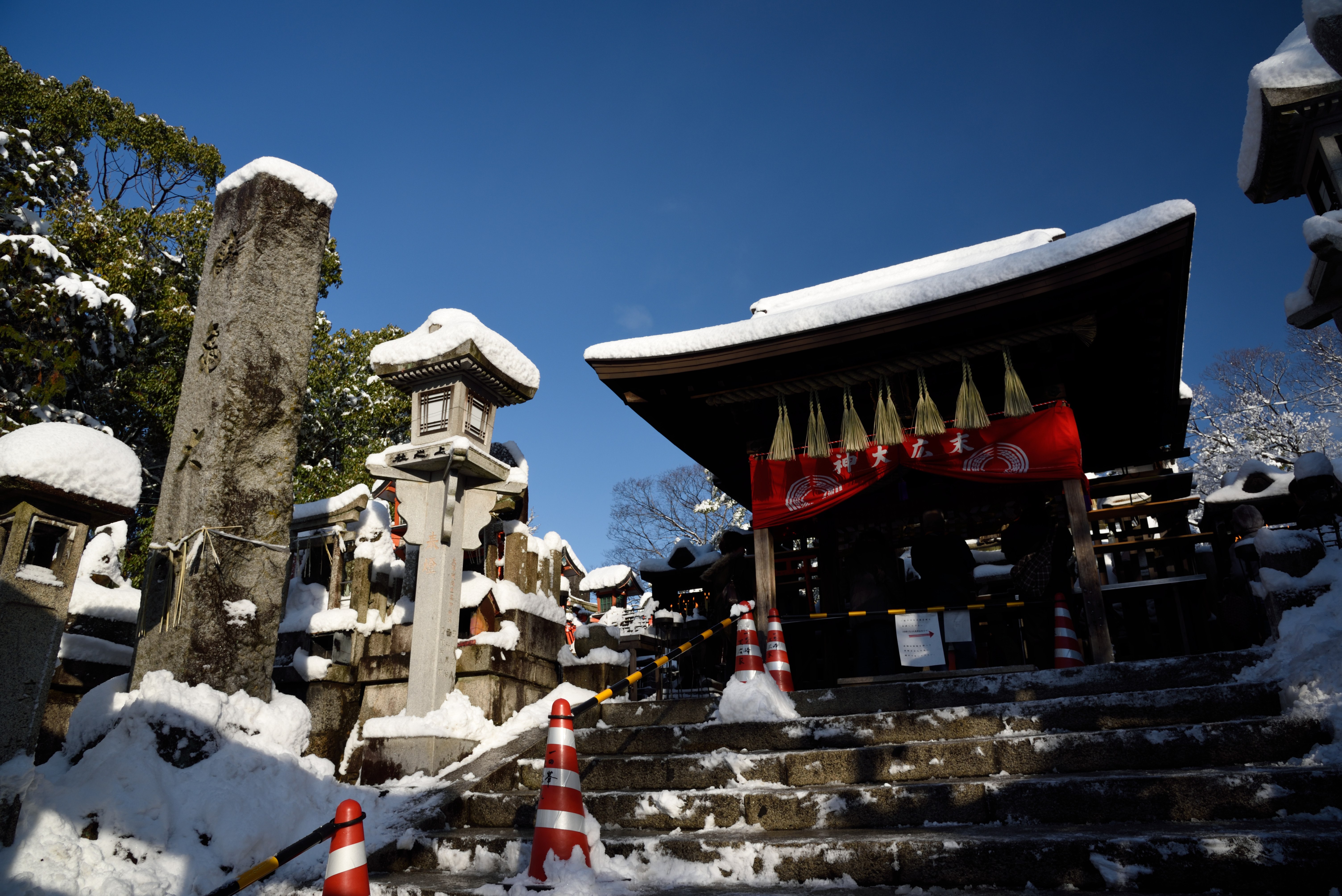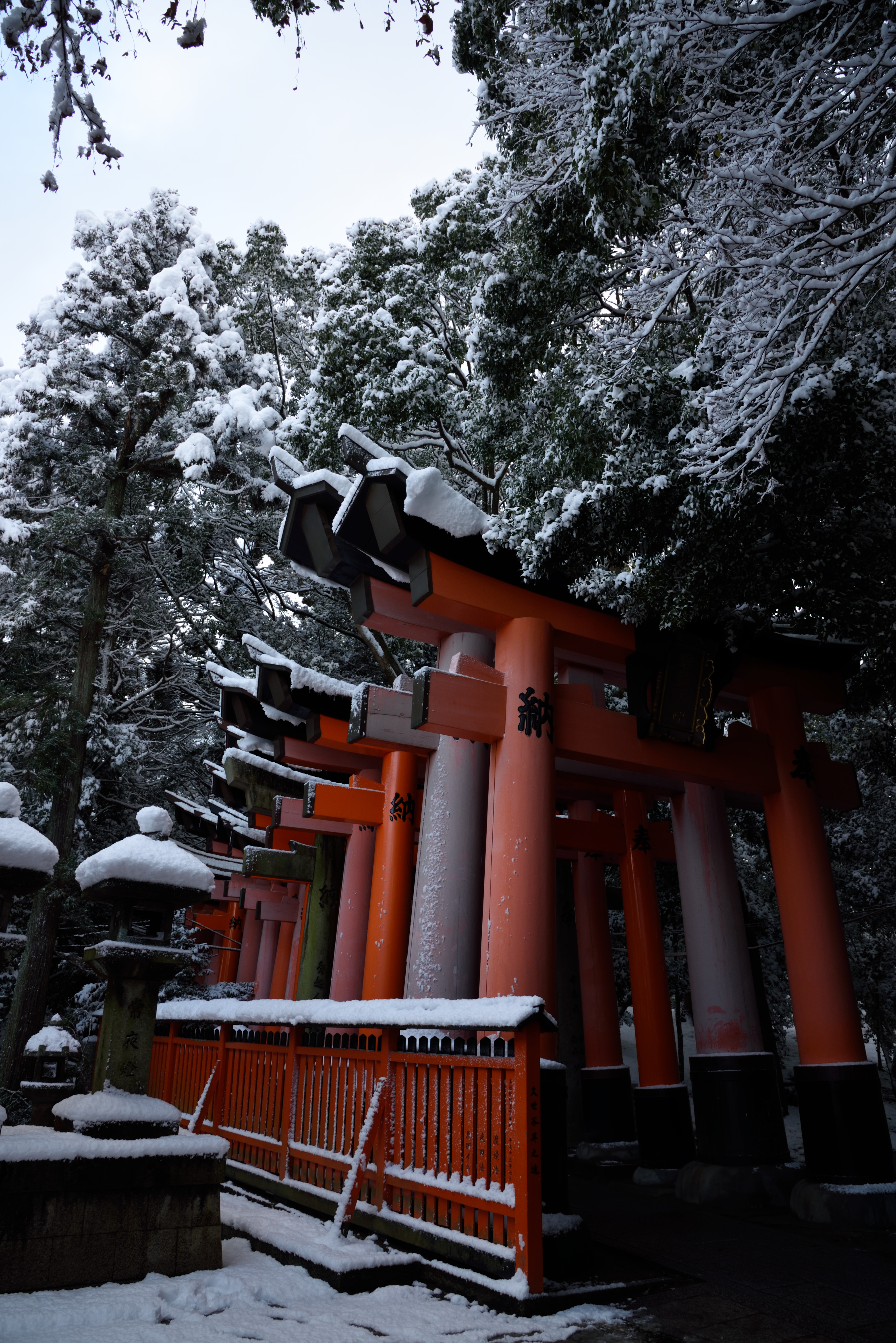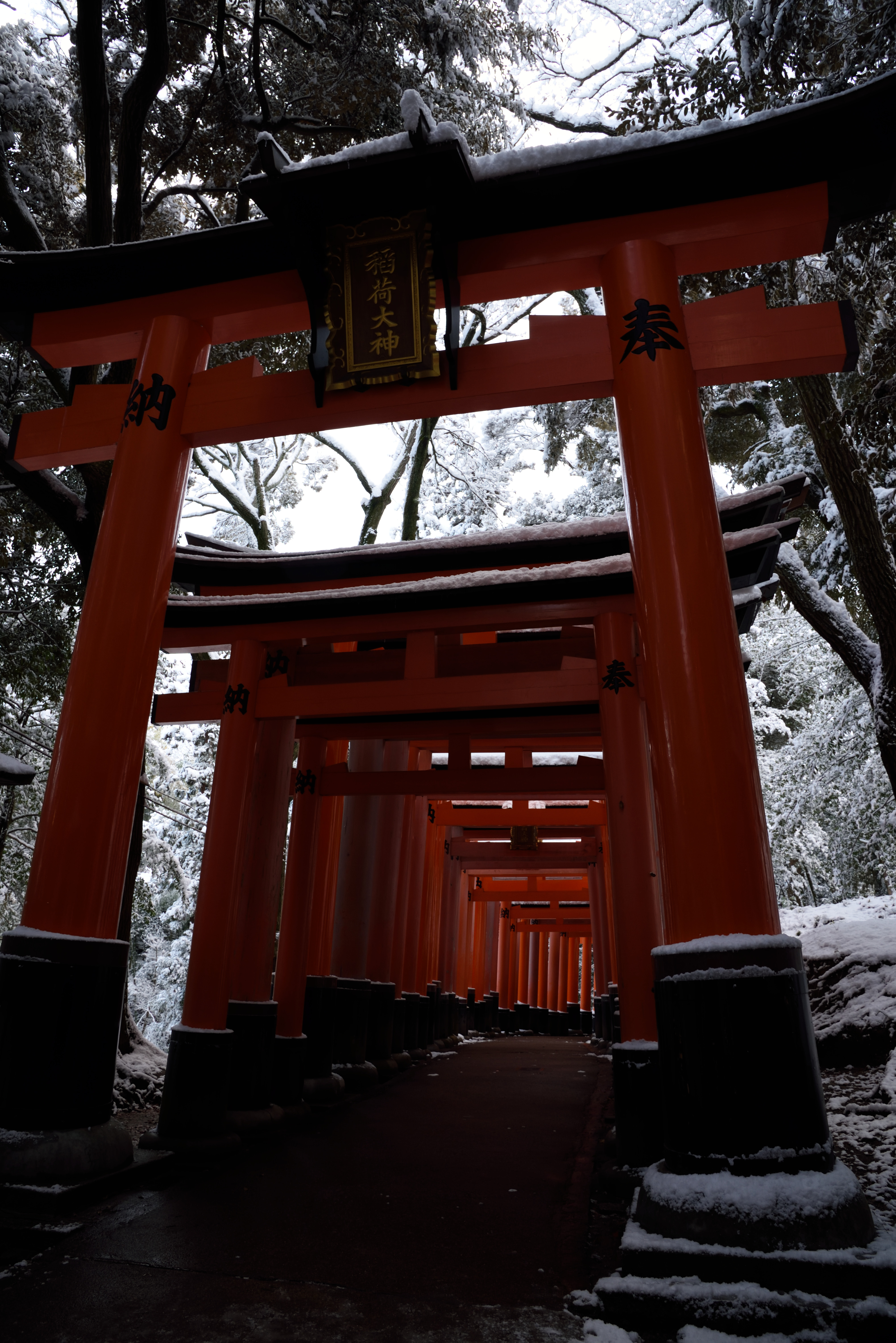| 四ツ辻から上の方は参道にも雪が残っていて,雪景色と言える光景が見られました.. |