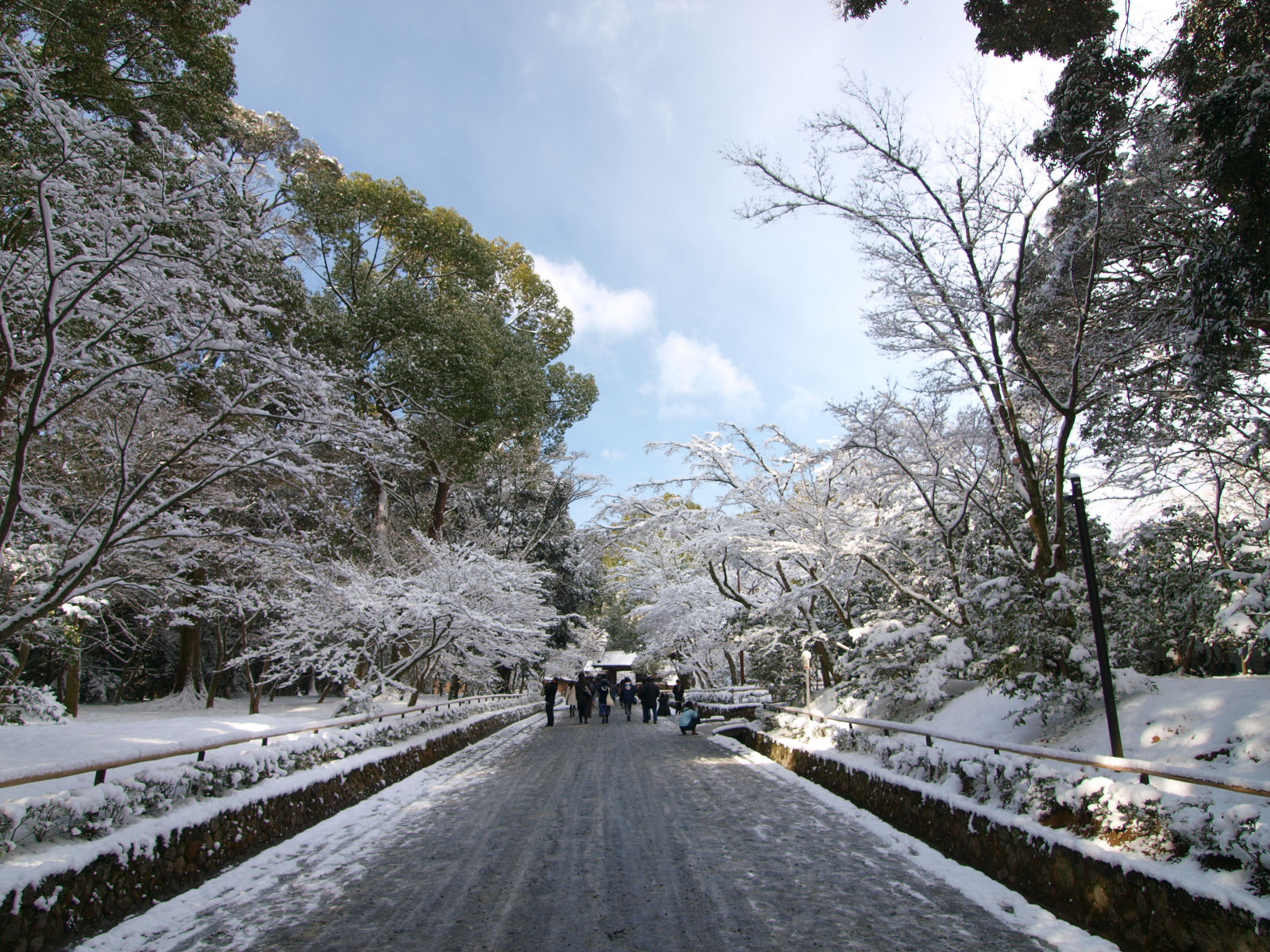 夜のうちにかなりの降雪があったようで,この日の京都は朝起きると普段ない位の雪が積もっていました. これは雪の京都を撮る絶好のチャンスということで,急遽ネットのライブカメラで各地の雪の状況を調べたところ,金閣寺にも雪が十分積もっていたのでここに決めました. それと,最近気になっていた実相院にも行くことにしました.また途中にある下鴨神社にも寄りました. 天気は晴れたり雪が降ったりが急に変わるような天気でした. |