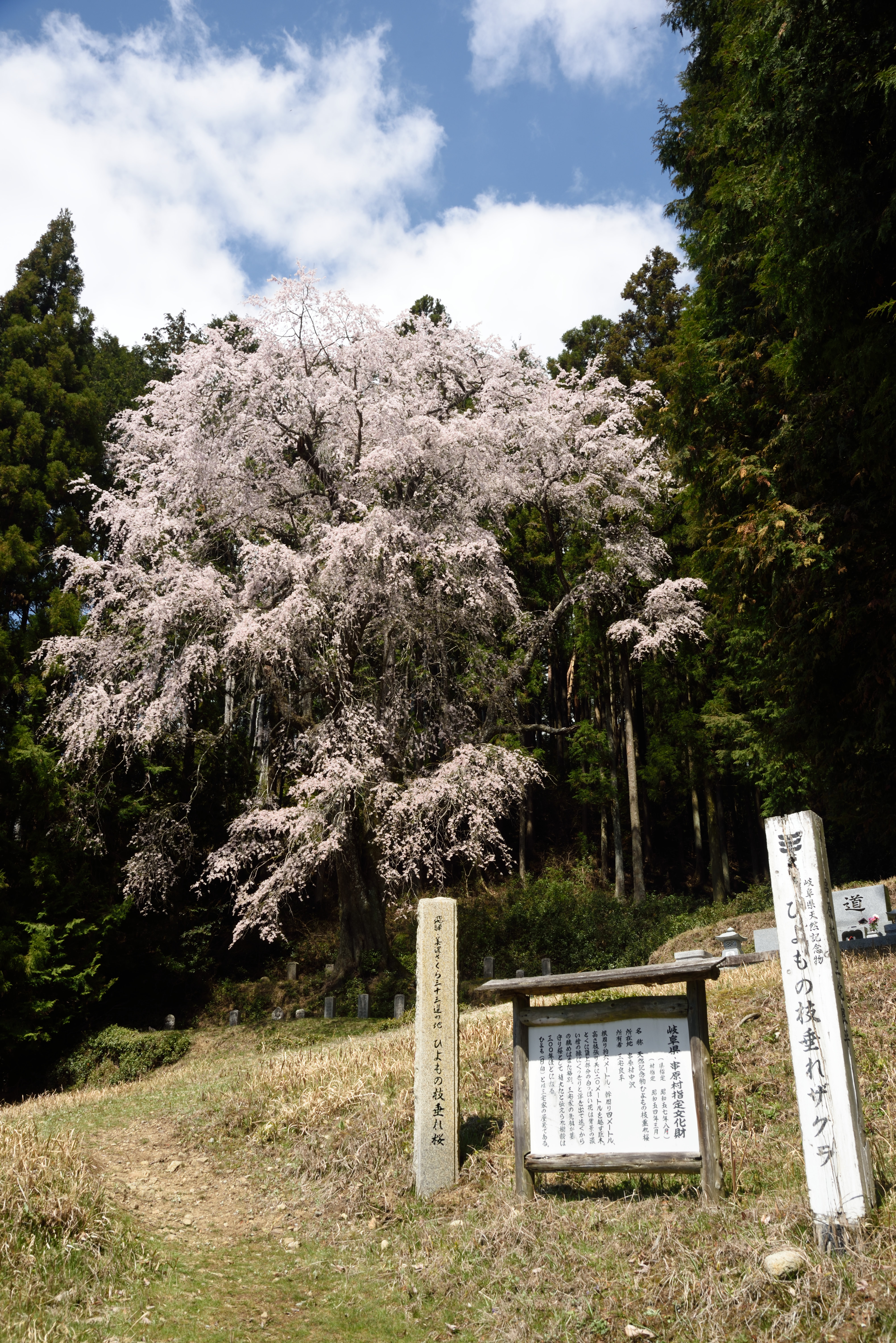 ひもよの枝垂桜 2020/4/5(6年前) 写真, 岐阜, 東海 この日はひもよの枝垂桜を見に行きました. 去年は恵那で桜巡りをしましたが,ここの桜はすでに葉桜となっていたので,今回再チャレンジしました. 今回は見頃に来ることができました. 雲が多い空で下が,かろうじて青空も入れられました. ひもよとは三宅家の屋号とのこと. この桜を見に行くとき民家の敷地を通過しますが,ここが三宅家でしょうか. 駐車場が用意されていますが,それもここのご厚意なのでしょうね.