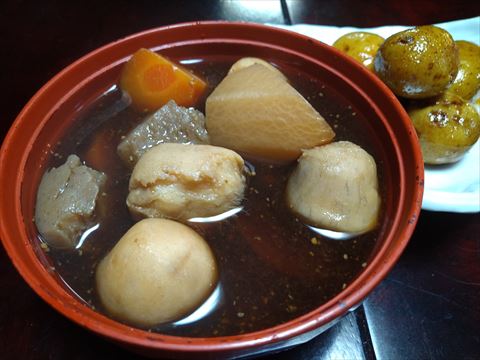 囲炉裏で似た汁とじゃがいもを煮たもの.
