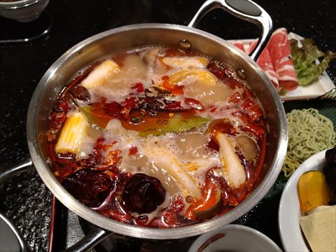 火鍋を初めて食べてみました.辛かったです.