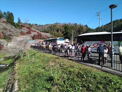 川見の四季桜 2020/11/21(5年前) 写真, 愛知, 東海 続いて川見四季桜の里に行きました. 山一面が桜と紅葉でした. 手前の駐車場は閉鎖され,バスの乗降専用となっていました. 手前の橋から. 山に登ってみましたが,中からは特に景色はよくなく,特に登る必要はないと思いました.