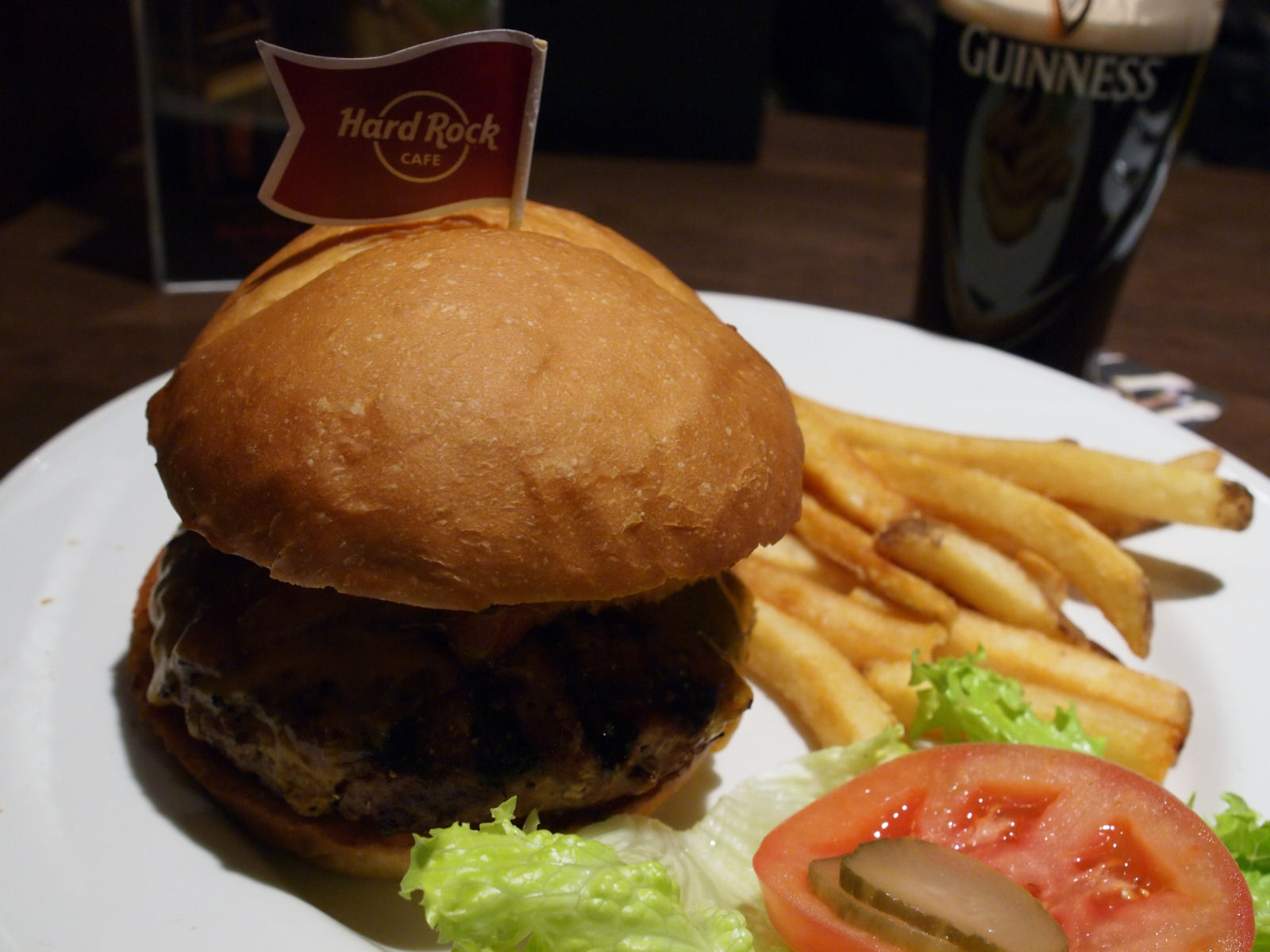 電車に乗って本町で降り食事をしたのはハードロックカフェ.目的はアメリカンサイズのビッグなハンバーガーです.