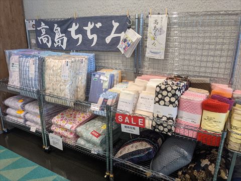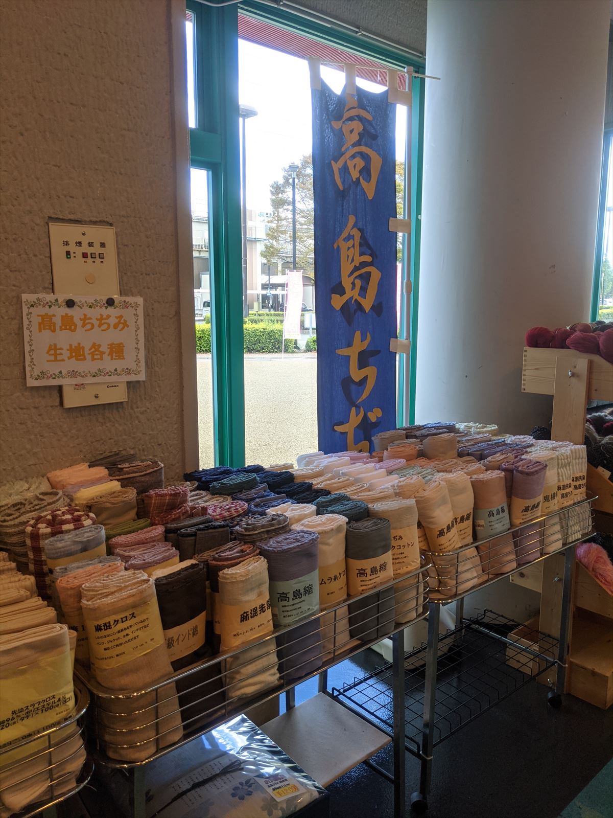 高島ちぢみで作った服やシーツなどもあり,生地も多くありました.