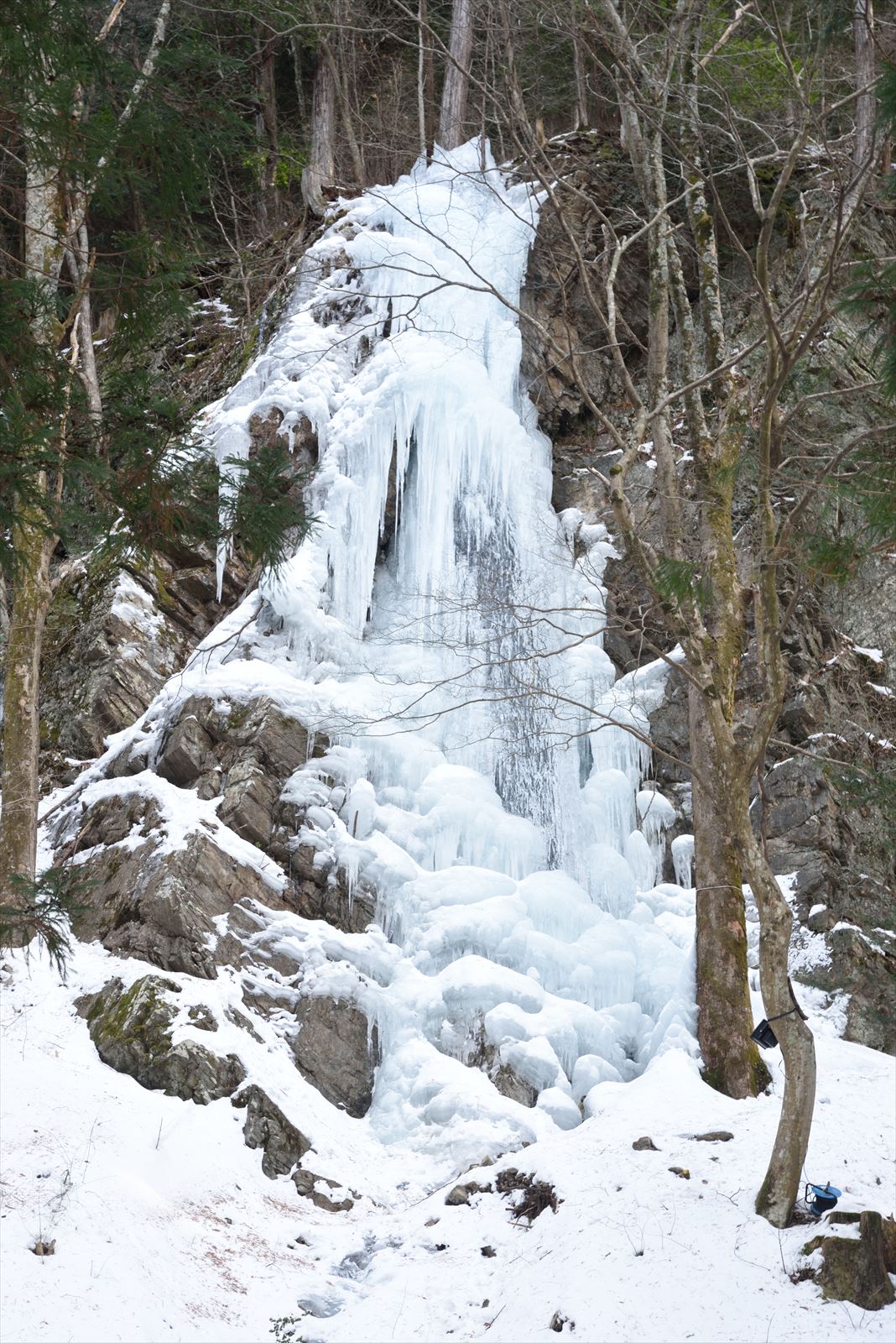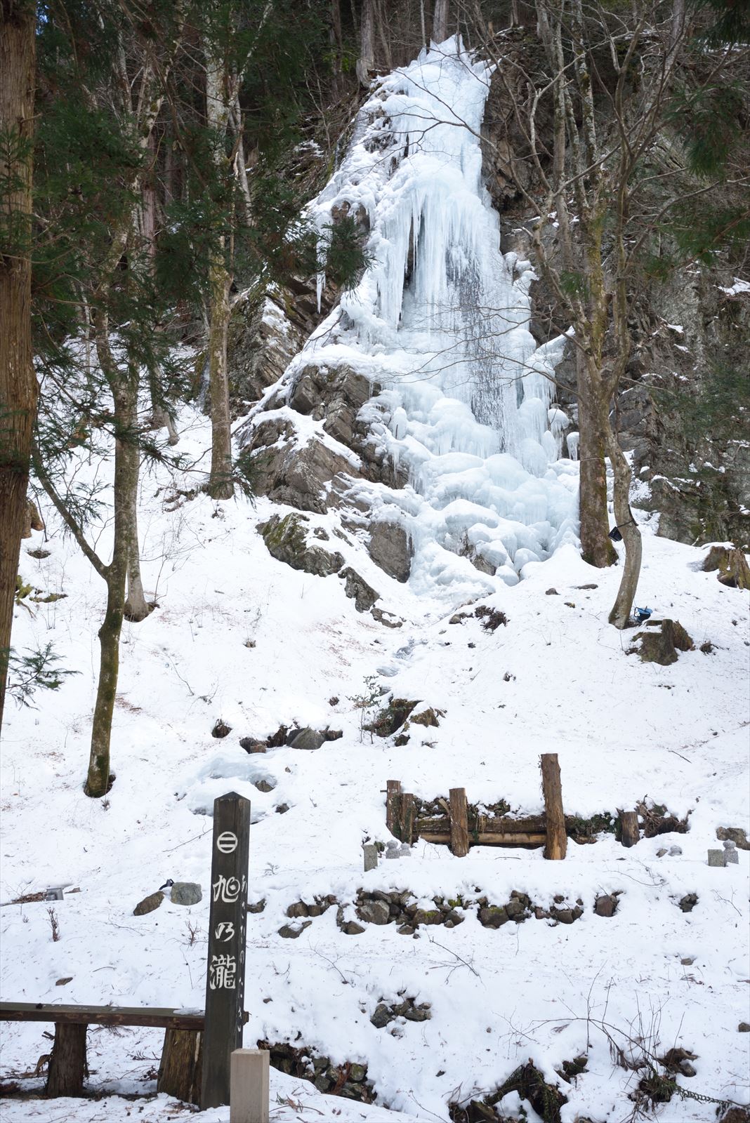 南宮神社の旭の滝 2022/2/5(4年前) 写真, 甲信越, 長野 木曽町の南宮神社を訪れました. ここに旭の滝があるとのことで,探しながら歩いていたら,神社の裏にありました. 白川氷柱群を見た直後なので小さく見えますが,凍った滝に雪が少し積もってきれいです.