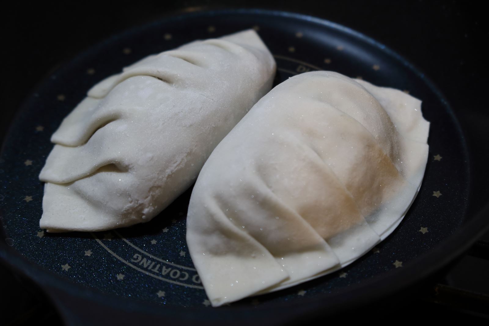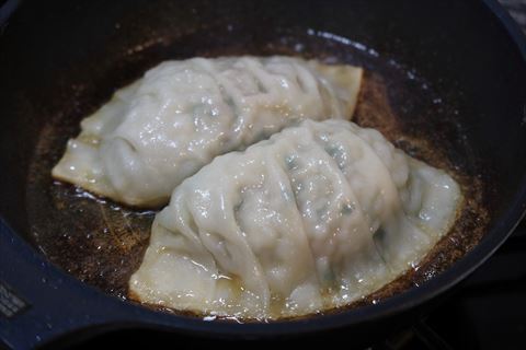 普通の餃子と違い反面に焦げ目が付く形となりました.