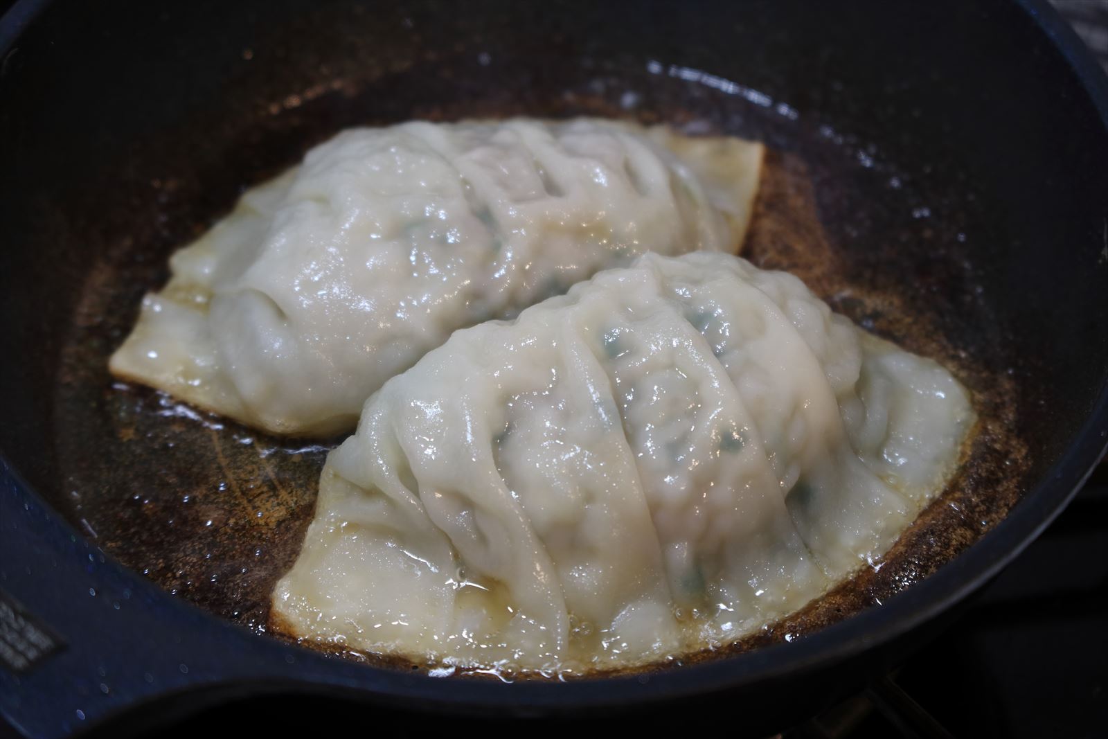 この餃子は揚げ餃子にするのが普通のようですが,とりあえず普通の餃子のように焼いてみました.