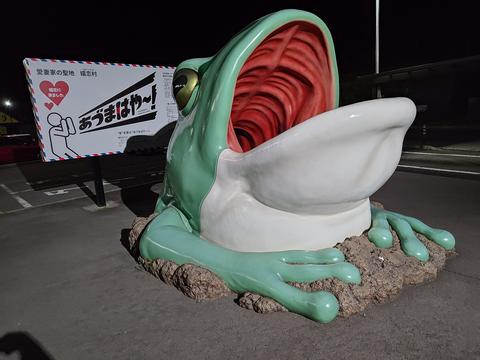 途中嬬恋の万座・鹿沢口駅前を通ったので,また駅前のカエルを見てみました.