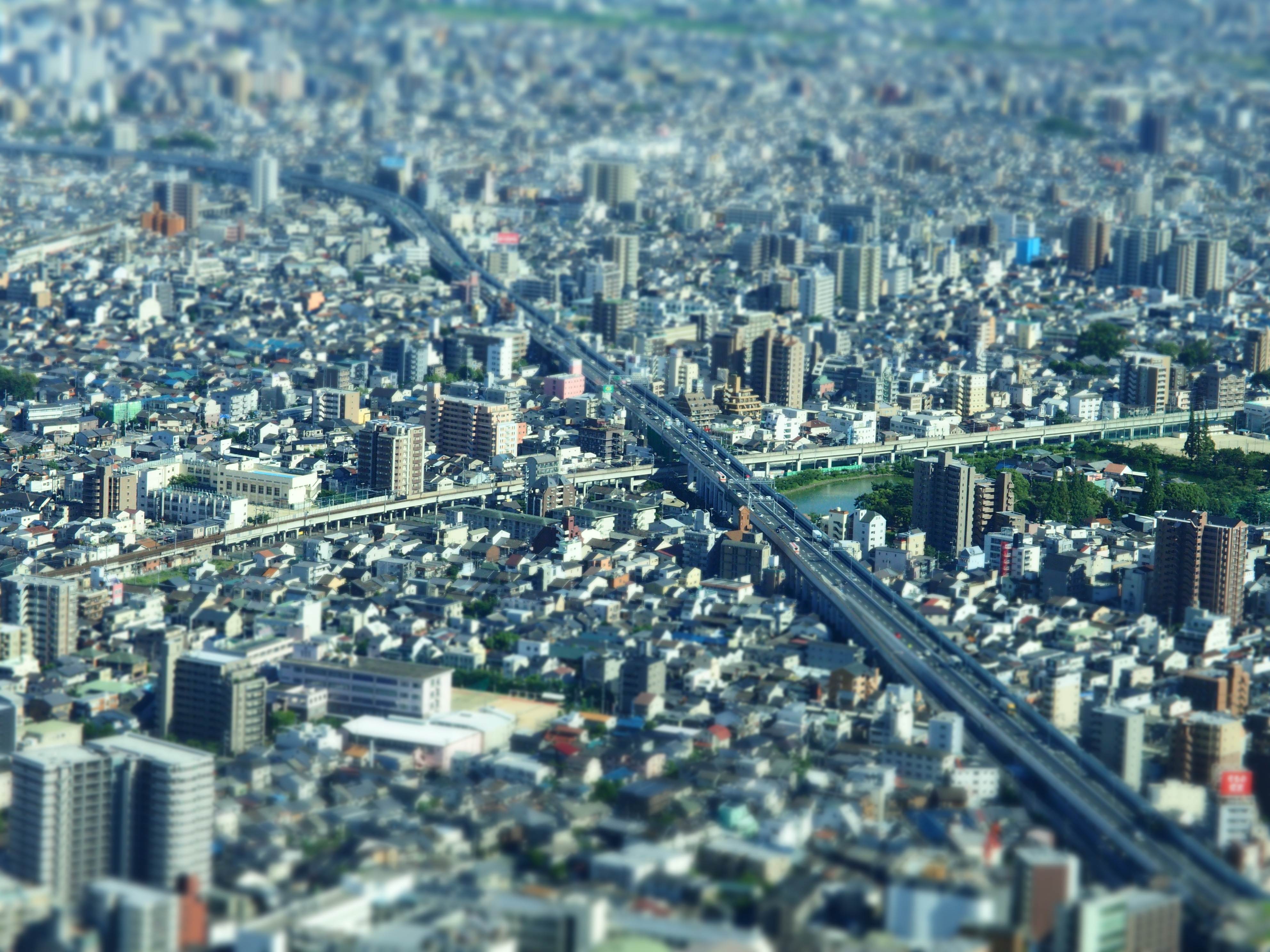 以下はデジカメのジオラマモードで撮ったあべのハルカスからの眺めです.