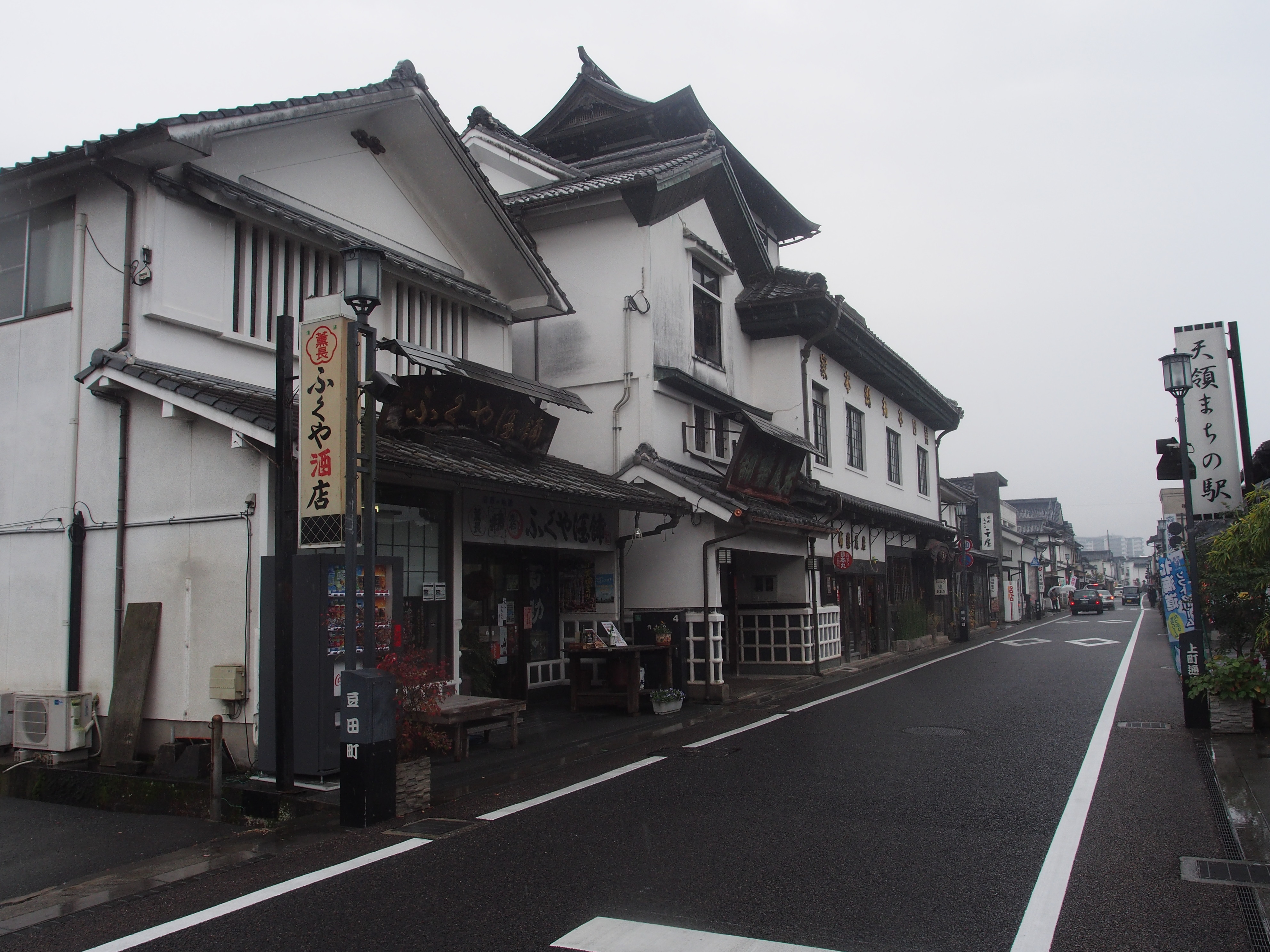 日田の旅~豆田の町並み 2016/12/4(9年前) 九州, 大分 日田駅前です. 日田には豆田町という旧天領(幕府の直轄地)があり,そこには古い町並みが残っているので,今回ここに来たわけです. この時間は直通バスはなかったので,近くまで行くバスに乗ってから雨の中てくてく歩きました. 豆田町について最初にあったのがクンチョウ酒造というところでした. 中は自由に見学できます.ありがたいことです. 豆田町は御幸通りと上町通りが通っています.そこを交互に歩いていきました.
