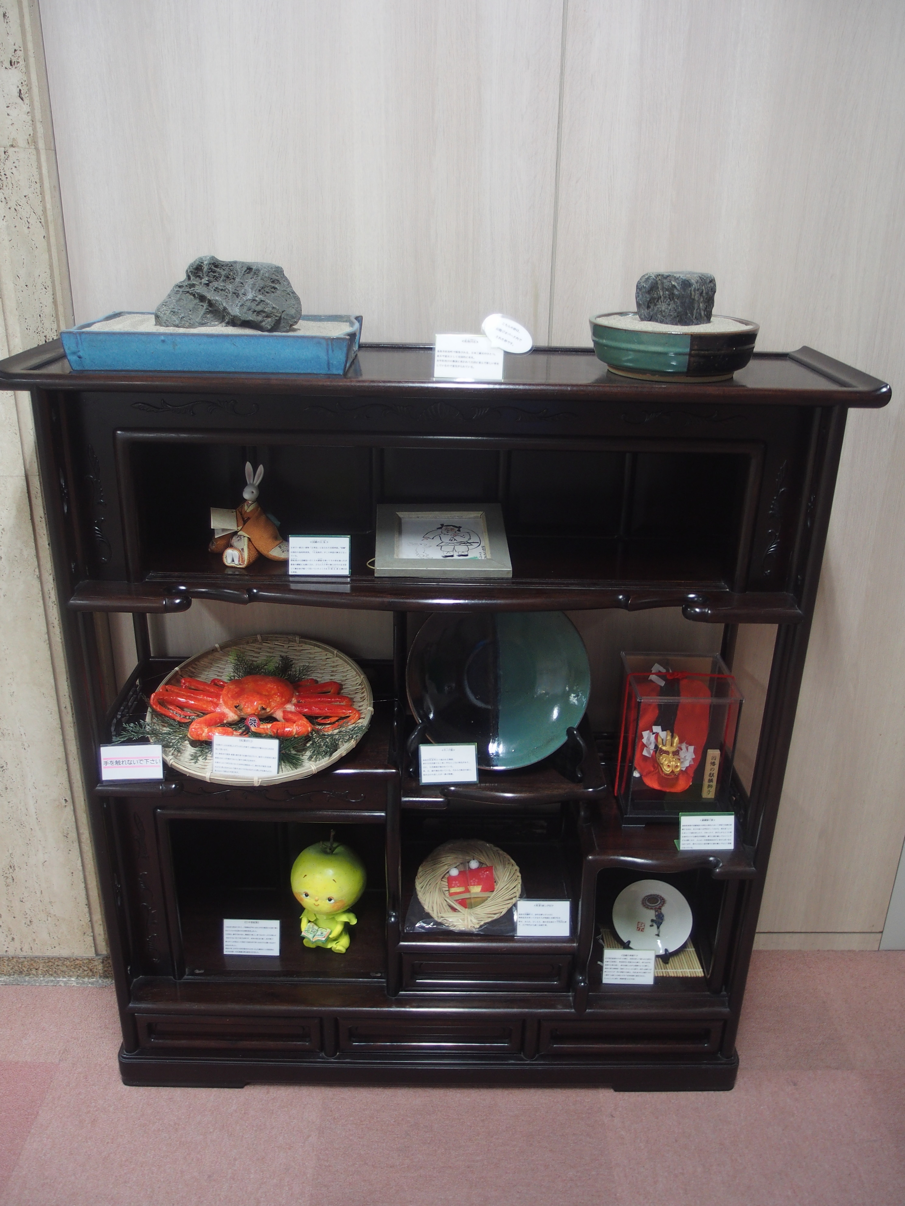 旅館の中にあった,因幡のうさぎと鳥取名物の模型.