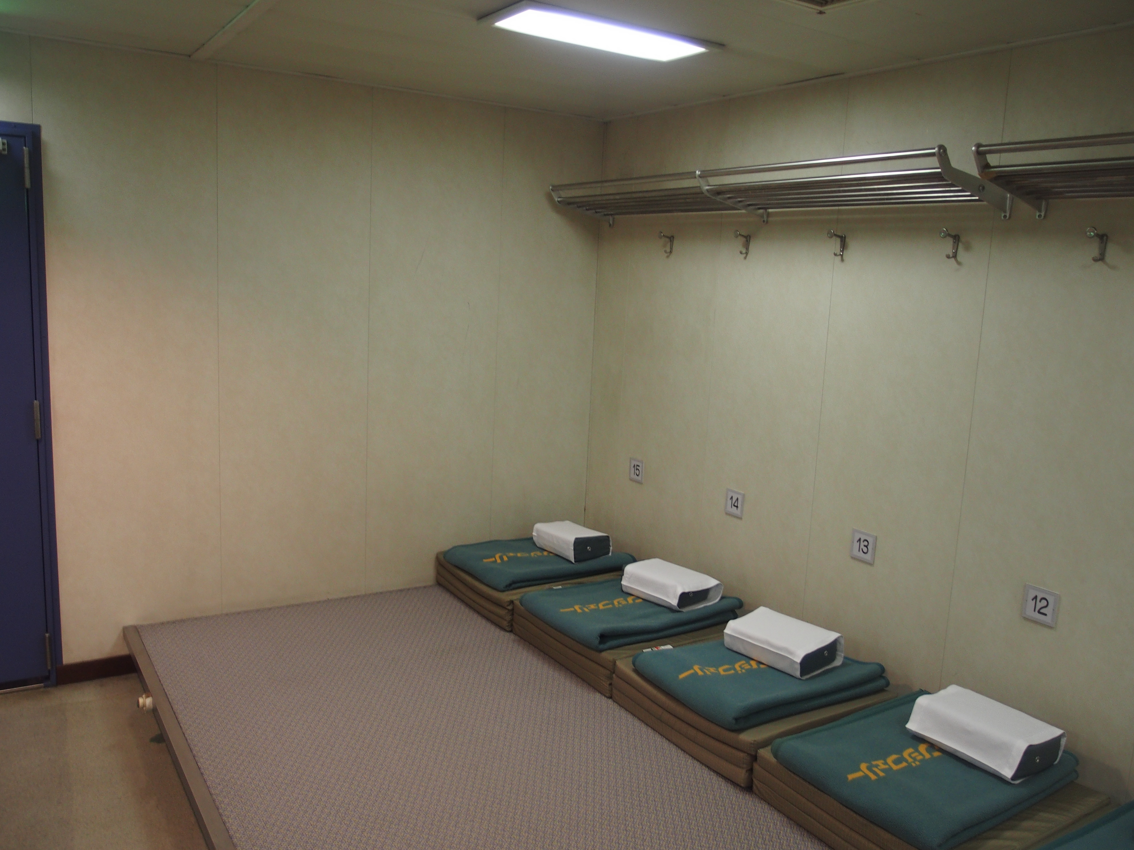 乗船手続を済ませて部屋へ行ってみると,自分の番号は15番と,ラッキーにも角の場所でした.