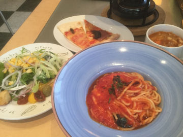 しかしランチメニューには焼きボロネーゼはありませんでした.一方でサラダ・ピザ・スープが食べ放題のフリードリンク付だったので,野菜分とチーズ分は満足するまで食べられました.