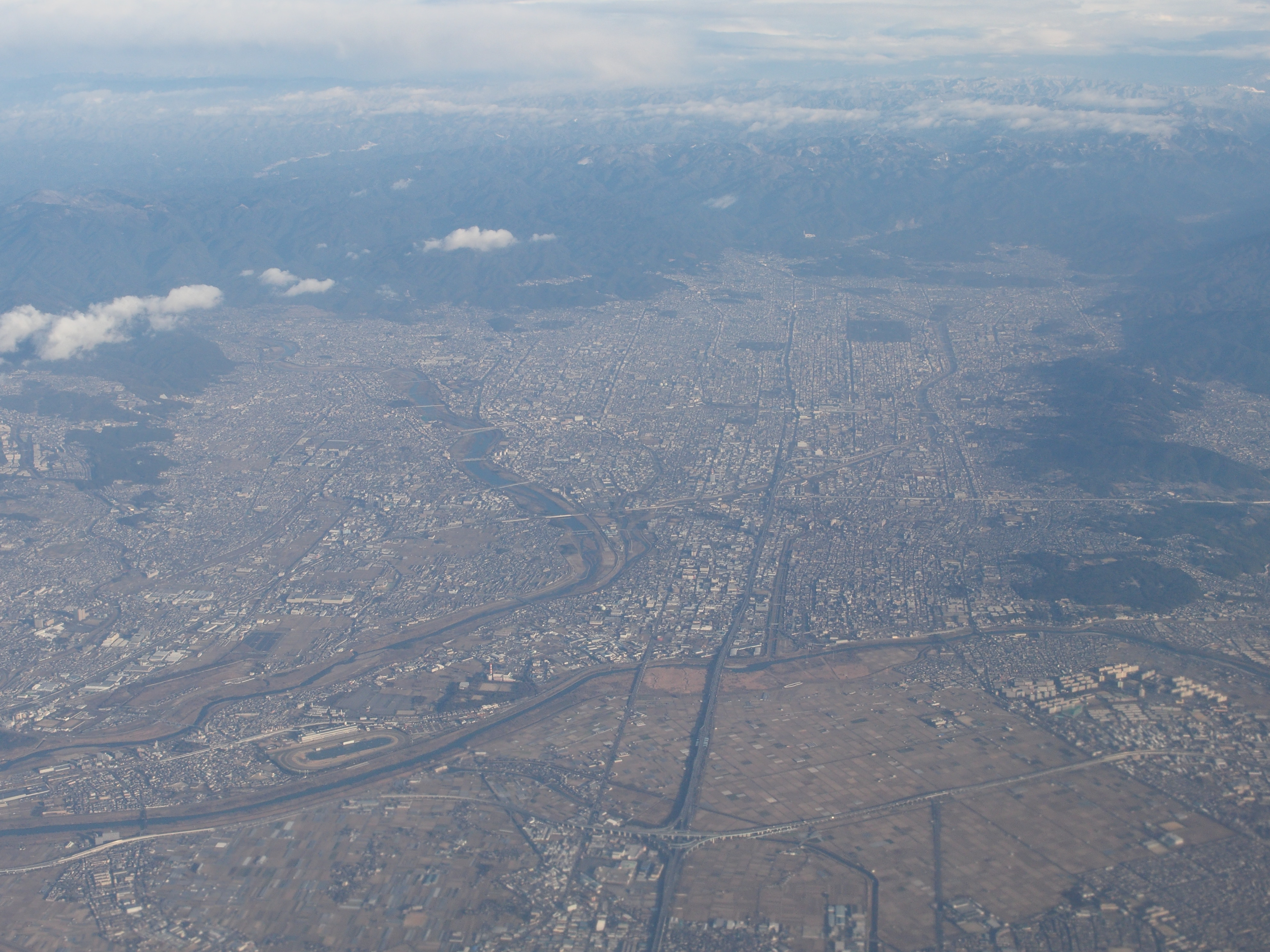 琵琶湖を越えたあたりから雲が出て地上がときたましか見えなくなりました.
