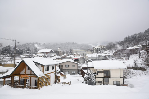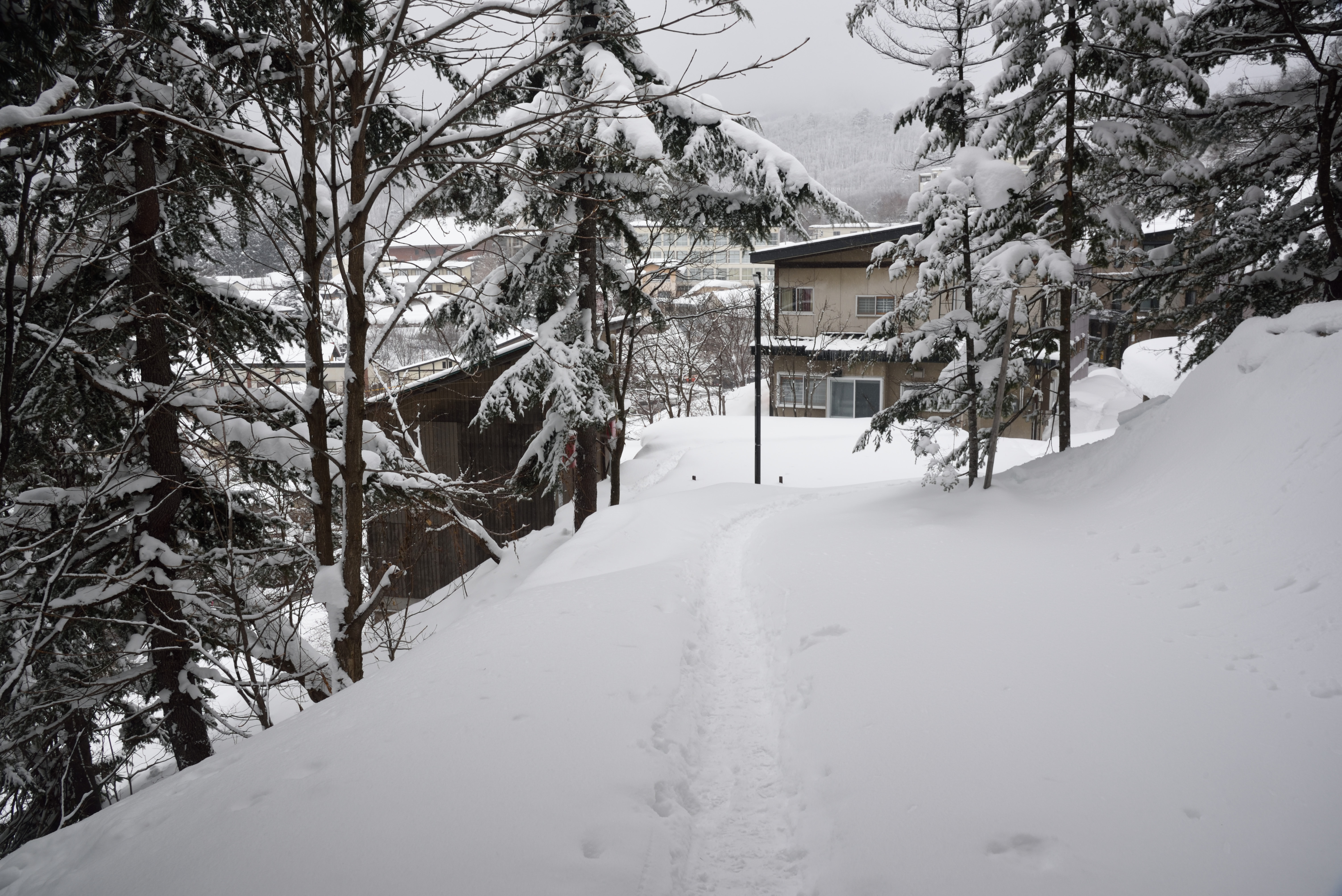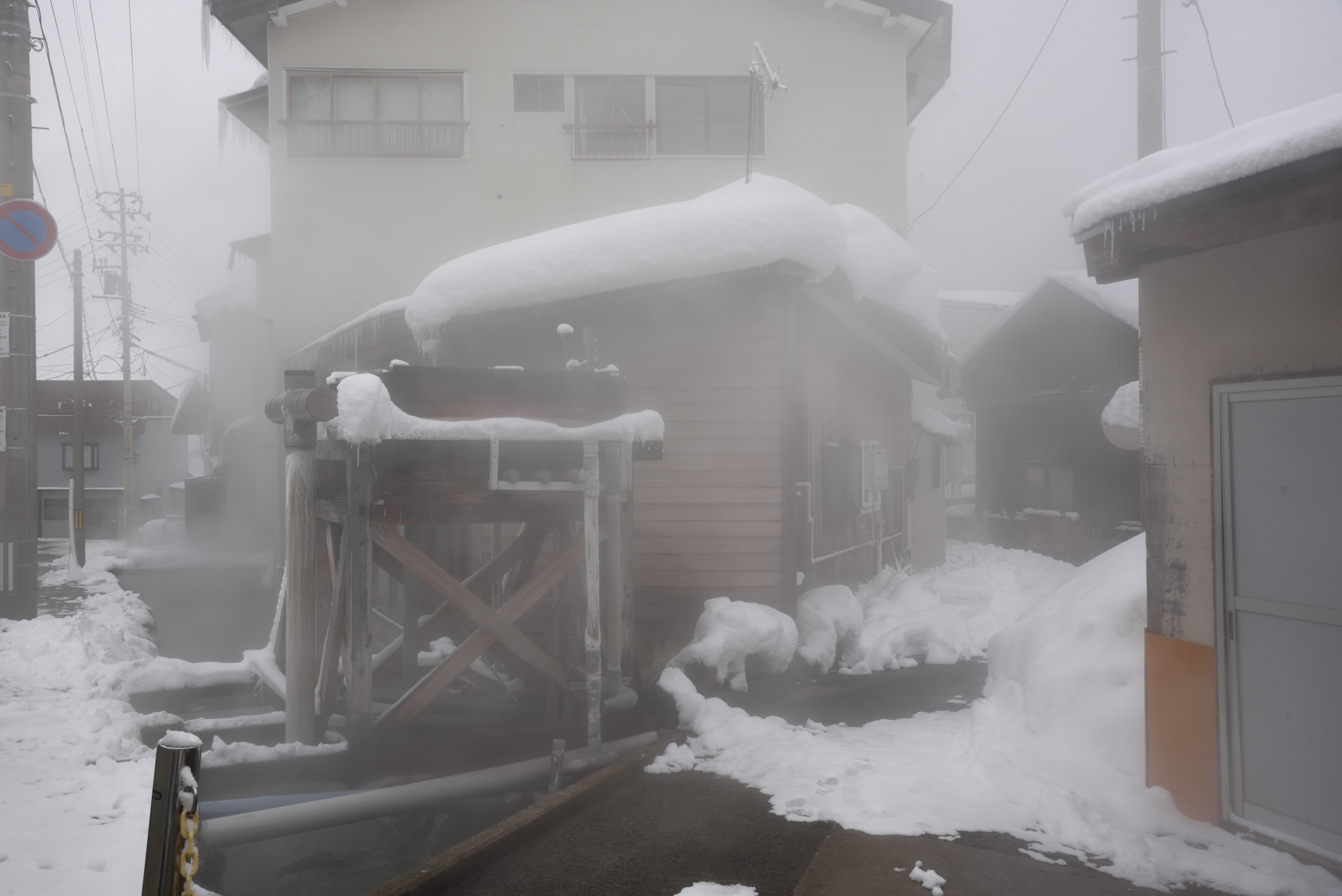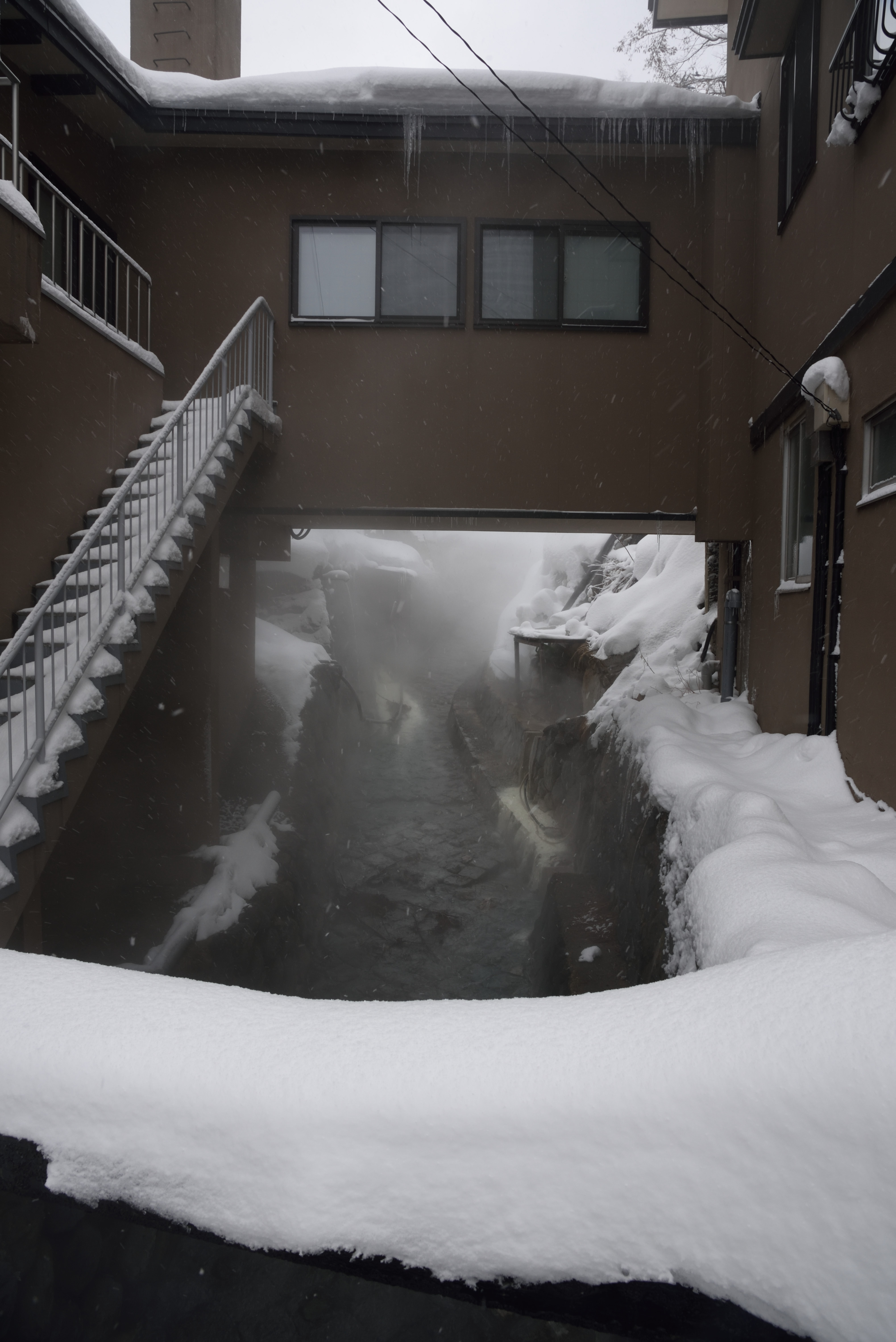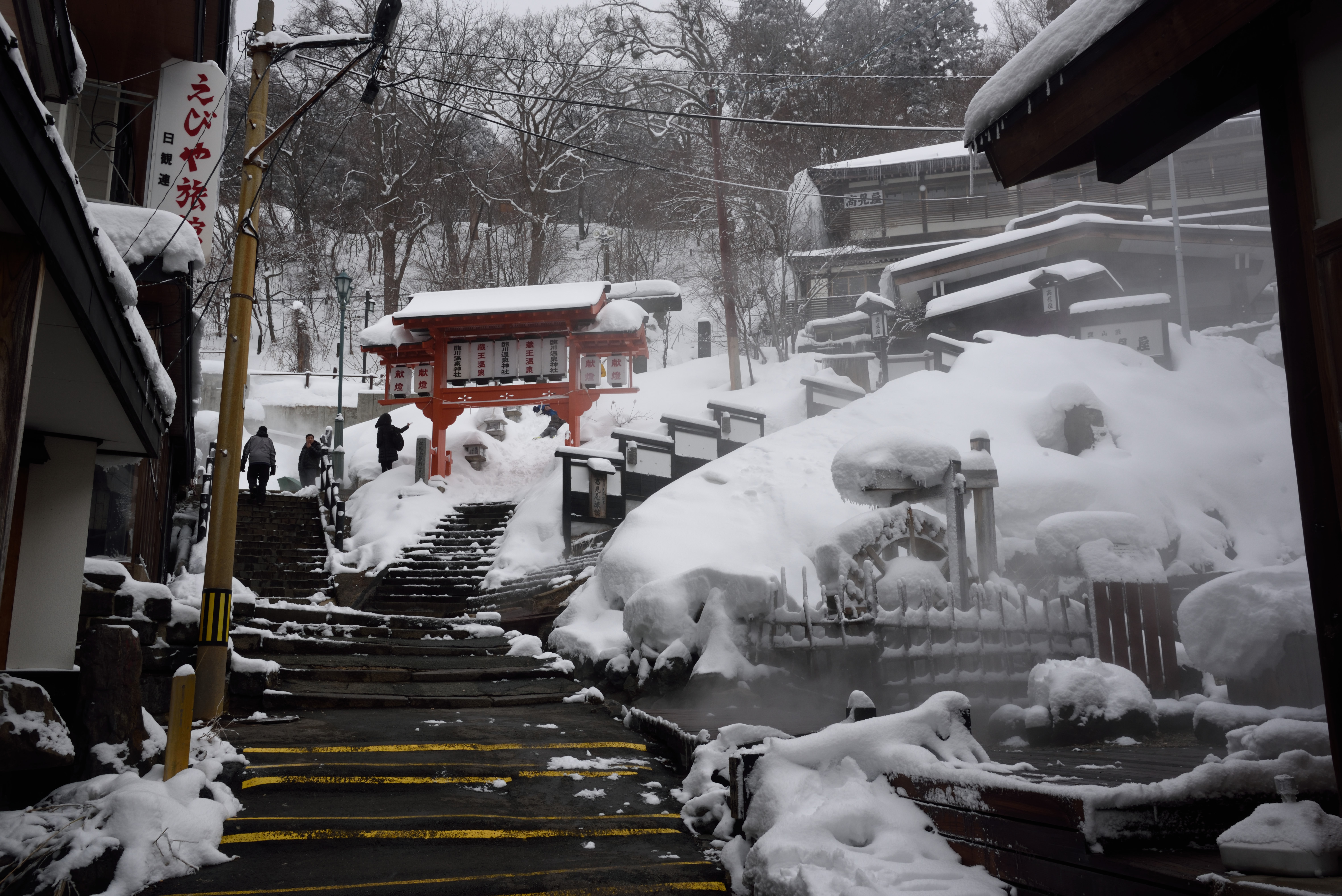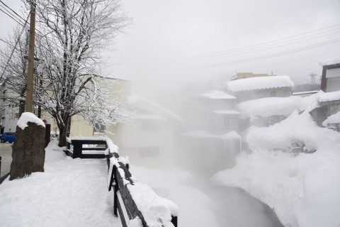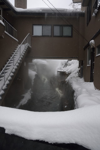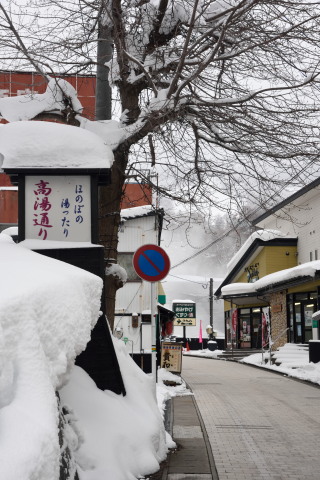 湯けむりがただよい,冬の温泉街として文句なしです.