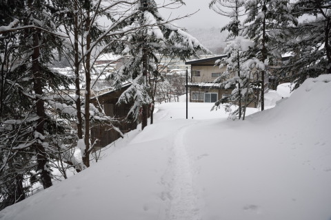 地図で小道があるところを通ろうとしたら,雪に埋もれて道なき道となっていました.