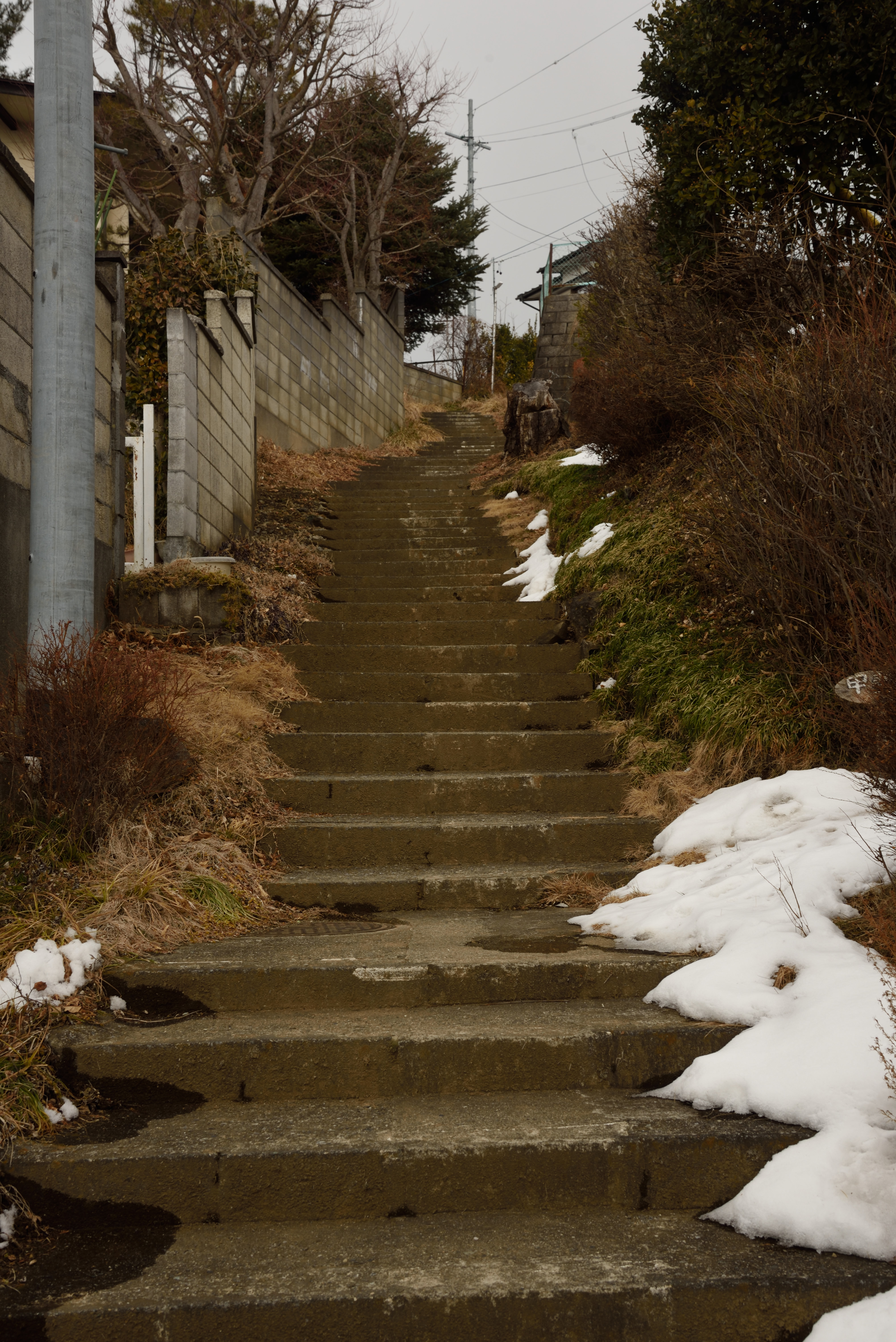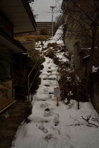 Googleマップで調べた道を行こうとしたら,最初の階段が雪に埋もれて通行止めとなっていました.