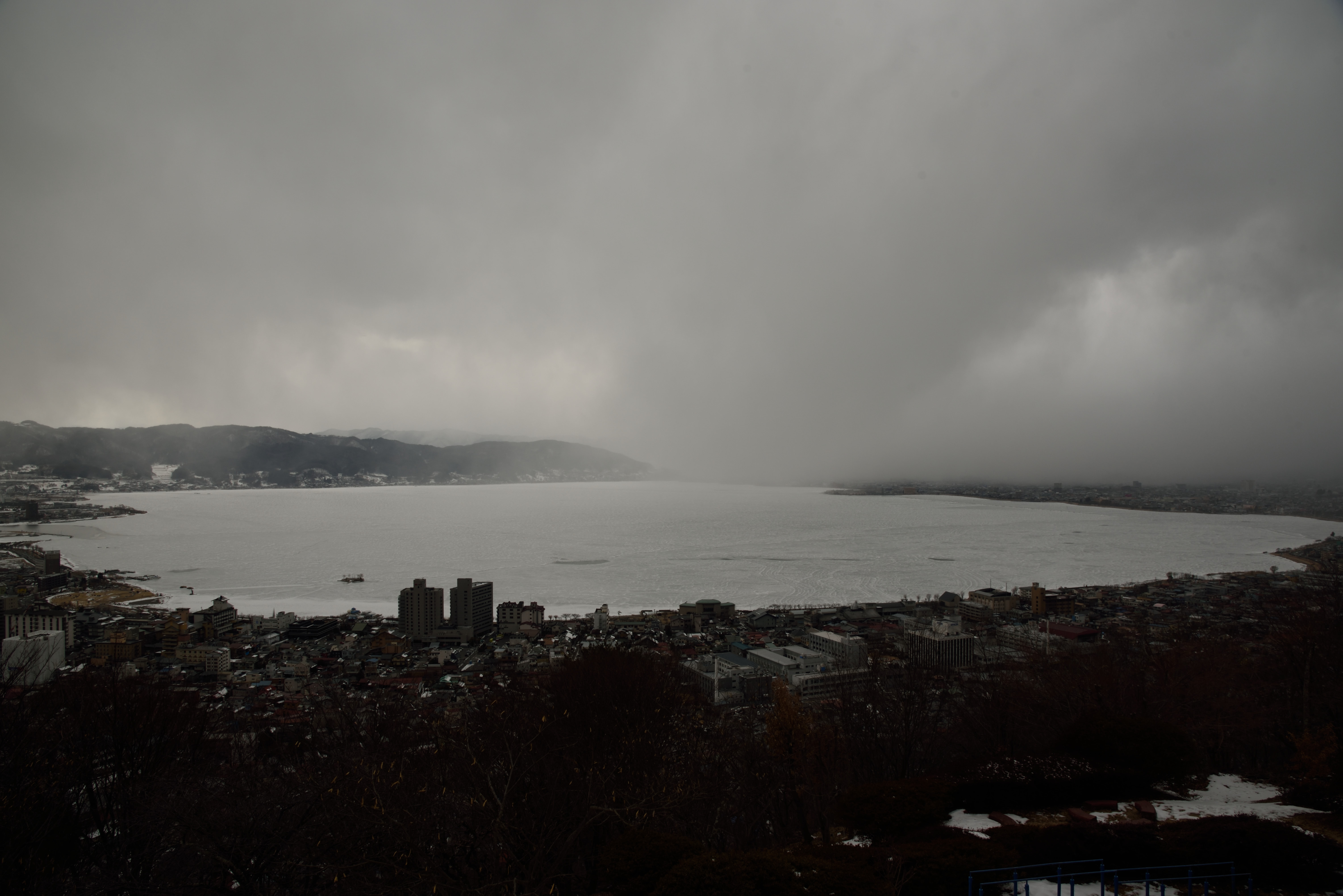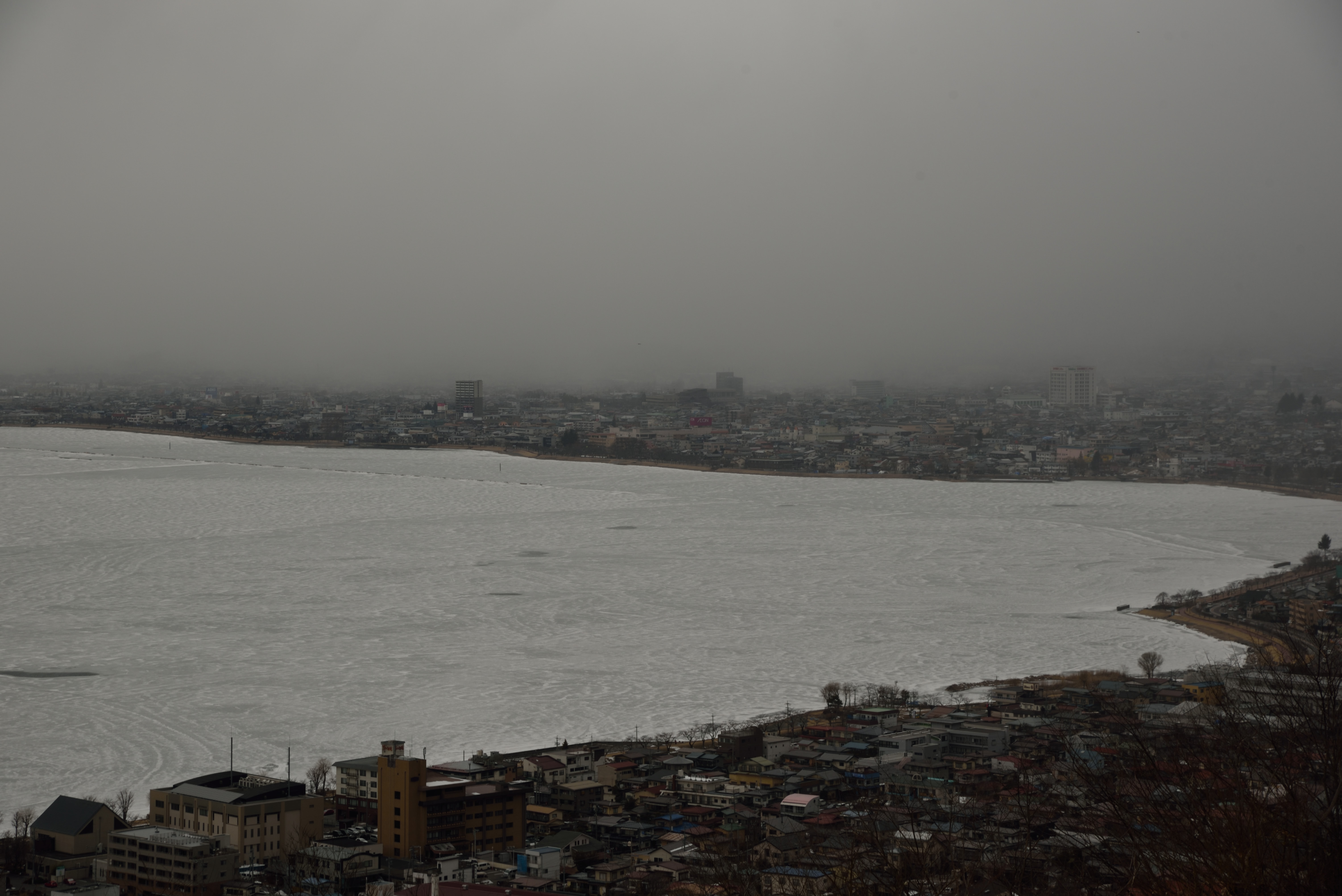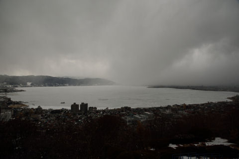 そして立石公園からみる琵琶湖.粉雪が舞うような天気で,暗くなってしまいました.