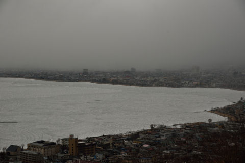 そしてこの後は下諏訪に行き,既に記事にしてある通りレンタサイクルで御神渡りを見に行きました.立石公園では雪が舞っていましたが,御神渡りを見たときは晴れてきてよかったです.