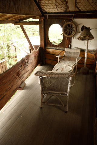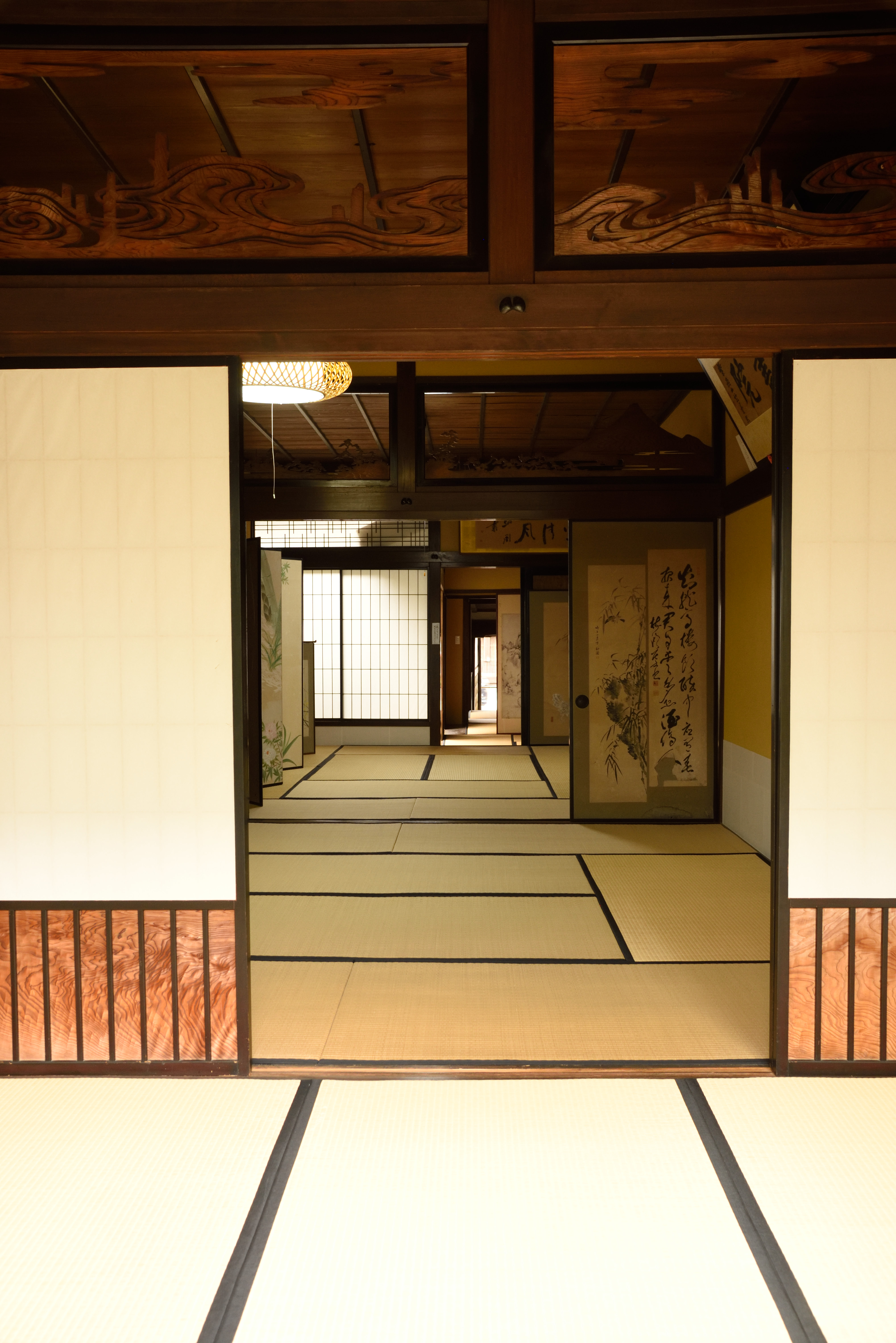 岩村町の旧家 2018/10/27(7年前) 写真, 岐阜 (2018年10月14日) 岩村町には旧家がいくつかあります. 木村邸.江戸期の豪商の家です. 電話は昭和26年まで使われていたものとか. 広いです. 天井が高いです. 敷地の一番奥にあった離れの2階. 純和風の家屋に絨毯や椅子など洋風の家具が積極的に取り入れられ,何とも言えない雰囲気です. 次に勝川家.こちらは渡り廊下. この家の2階はこの家の娘の部屋だとか. 出入り口以外の3方がガラスで雨戸がないという部屋です. プライバシー以前に暑そうだとか朝まぶしそうだとかが気になります. 土佐家.染物業を営んでいた家で,それ関係のものが色々ありました.
