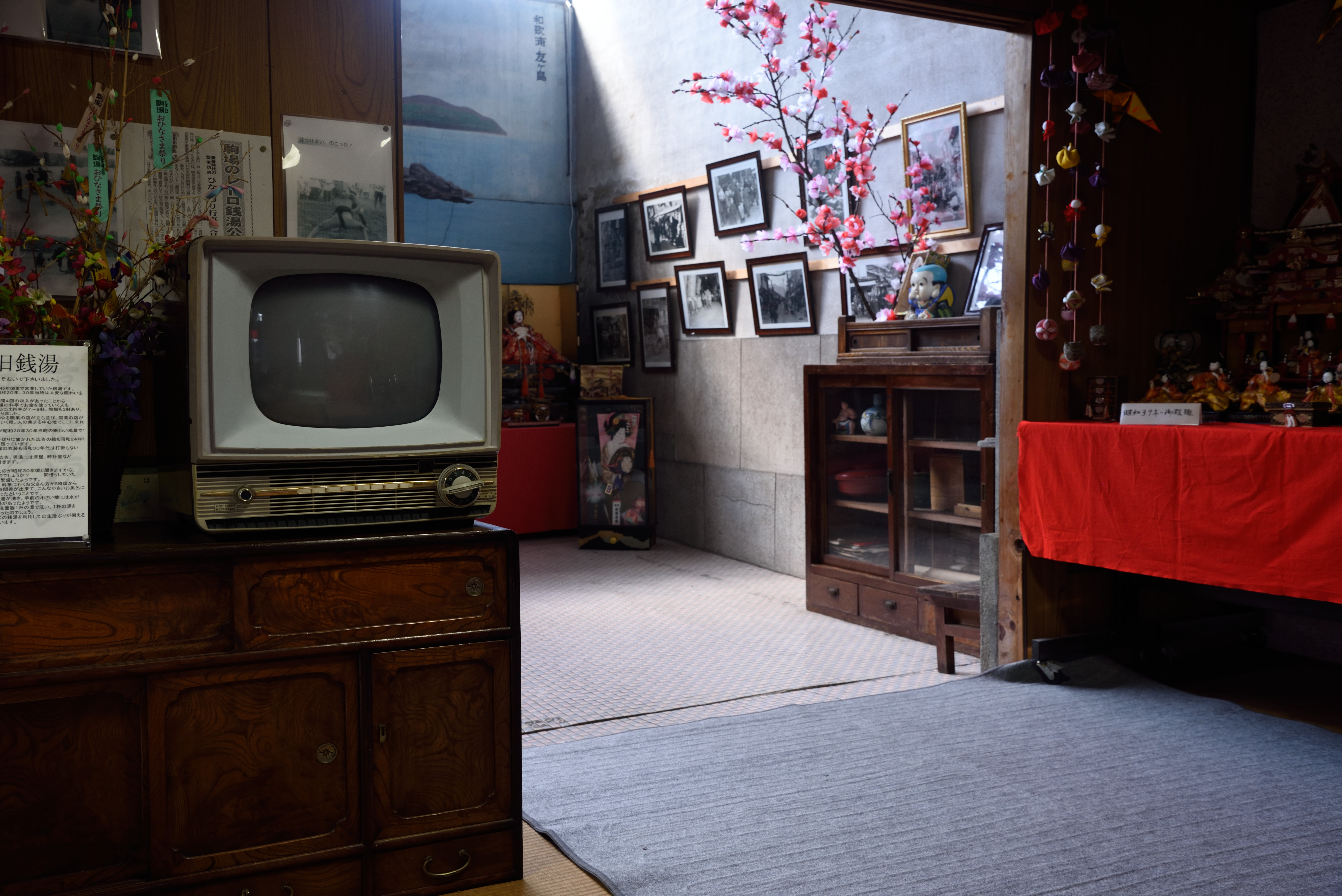 阿智村旧銭湯「玉の湯」のひな人形 2019/3/21(7年前) 写真, 甲信越, 長野 (2019年3月16日) 旧銭湯「玉の湯」はかつて使用されていた銭湯です. そこにもひな人形が展示されていました. 御殿飾りのひな人形. 昭和30年代まではこの形式がよく見られ,その後は段飾りのひな人形が多くなっていったと説明してくれました. きびで作ったという,昔の着せ替え人形. ブラウン管のテレビや広告などかつての銭湯の様子が残されていて,興味深いものでした. 玉の湯の外観. 周辺の様子. ここはかつての駒場宿で,古い町並みが残っています.