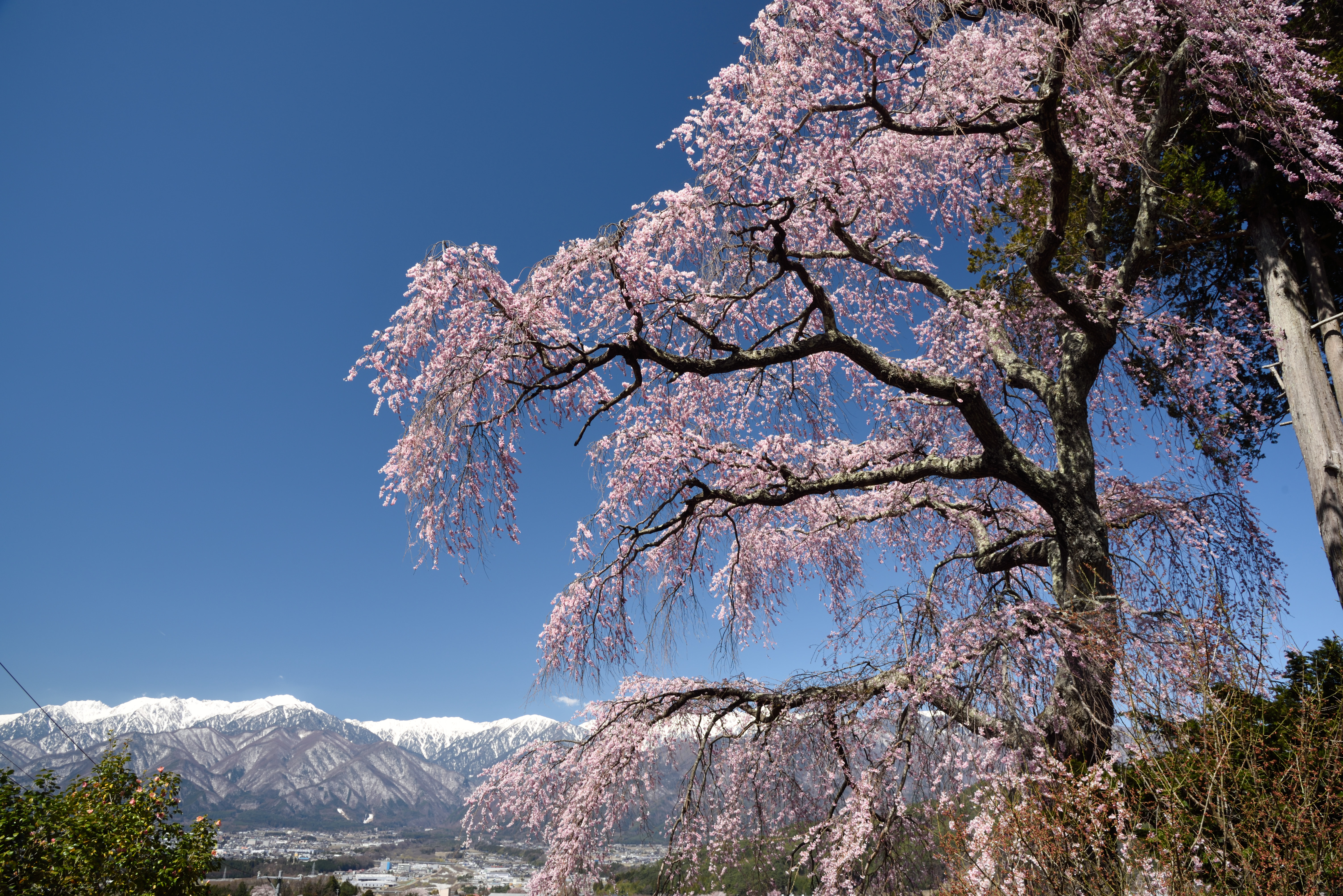 駒ヶ根の桜2019 2019/4/14(7年前) 写真, 甲信越, 長野 (2019年4月13日) この日まず行ったのは,栖林寺のしだれ桜です. 遠くに見えるのは南アルプスです. 午前中なら順光となるため,この日真っ先に行きました. 塀の外からの撮影. 駒ヶ根ではあと吉瀬のしだれ桜も行きました. 棚田の中にあり,立派な桜でした.