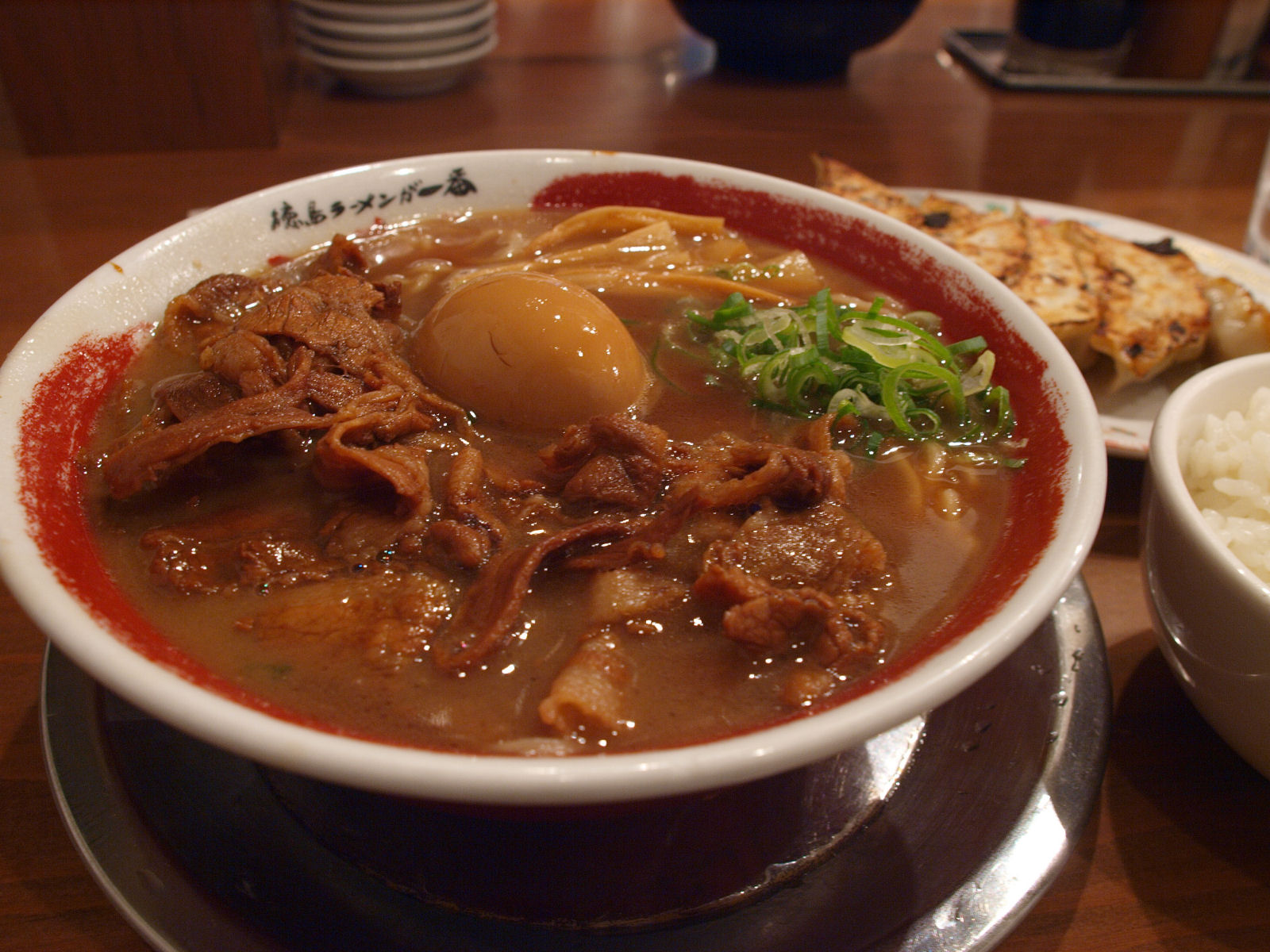 食べたのは京都拉麺小路内,徳島【らーめん東大】の徳島ラーメン味玉肉入+餃子セット.