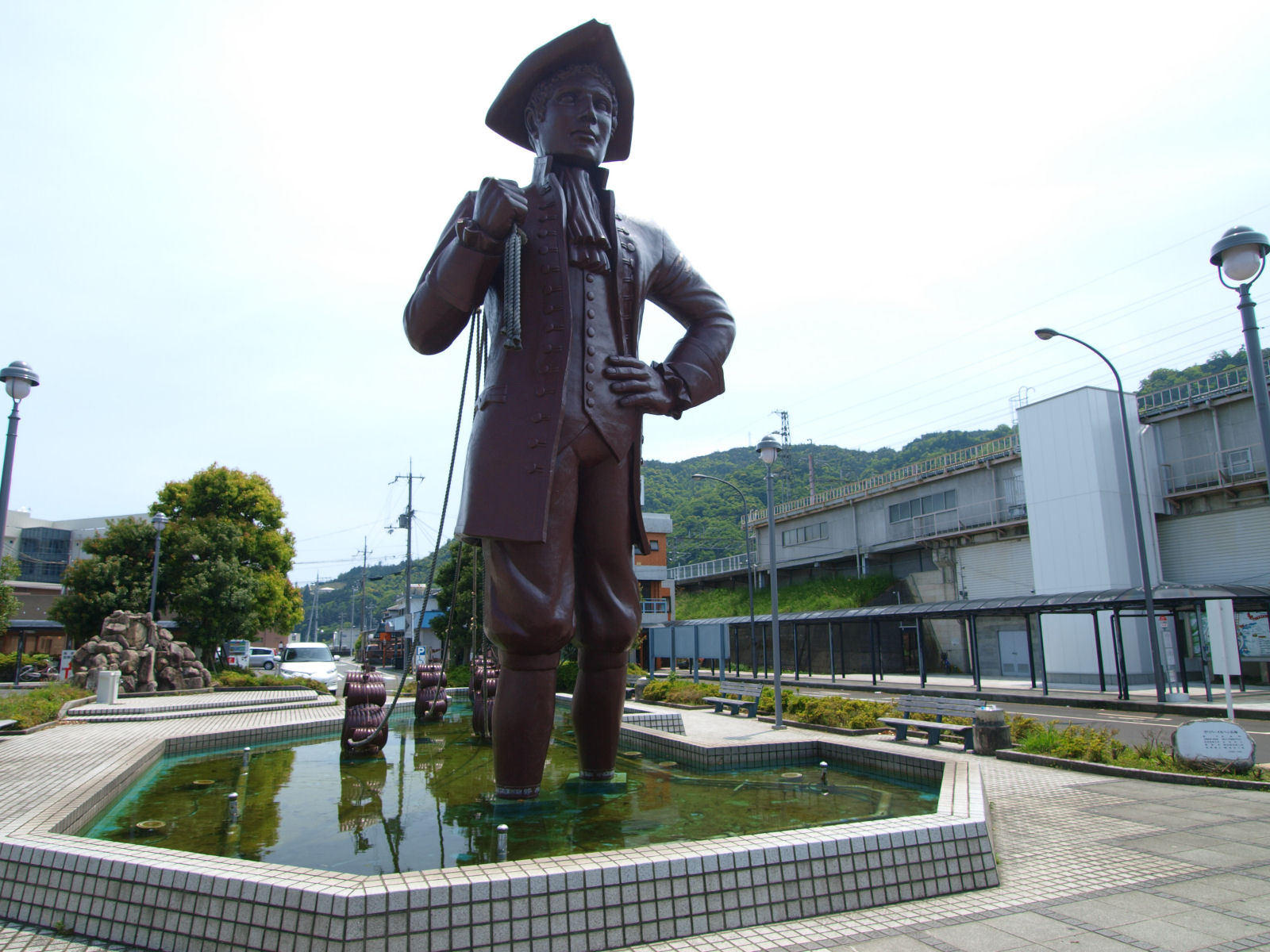 写真は近江高島駅の前のガリバー像.