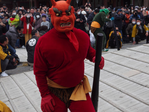 そして鬼が登場.観客に向かって雄たけびをあげます.子供の泣き叫ぶ声がイベントを盛り上げます.