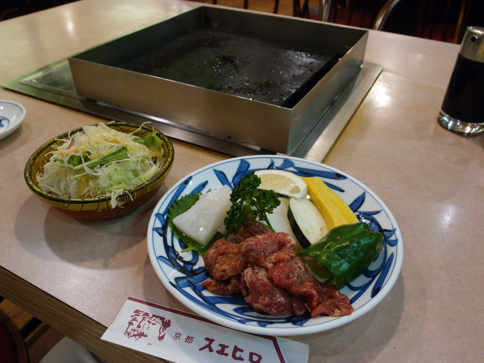 ビフテキの店とのことですが,石板で自分で焼くスタイルなので,どちらかというと焼肉っぽいです.