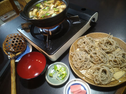 小分けにされたそばを「とうじかご」を使って鍋で温め,お椀によそって汁や具とともに食べるというものです.