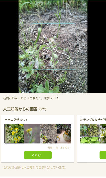 以前使った花の名前を調べるアプリで調べてみたら「ハハコグサ」と出てきました.別名はゴギョウです.