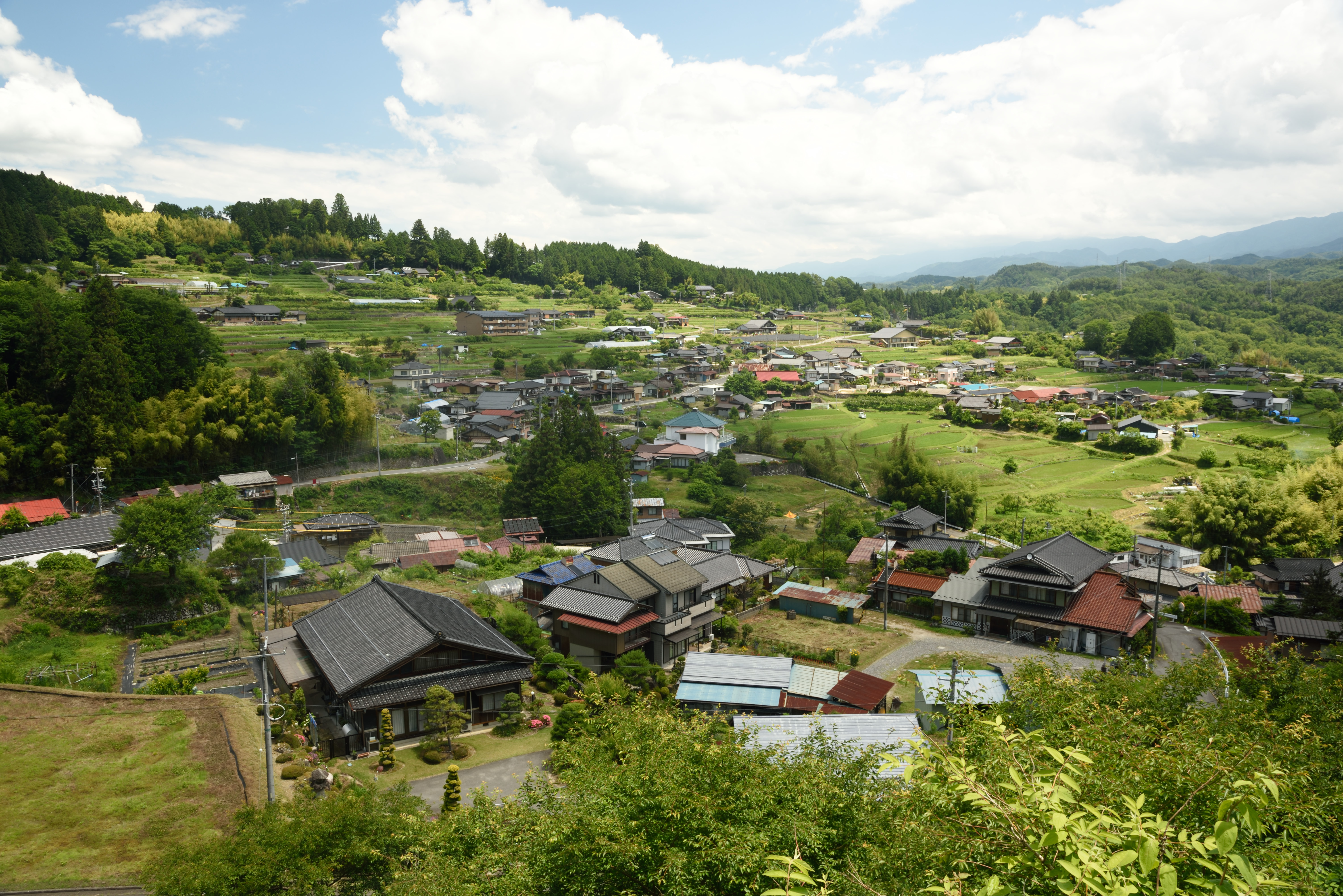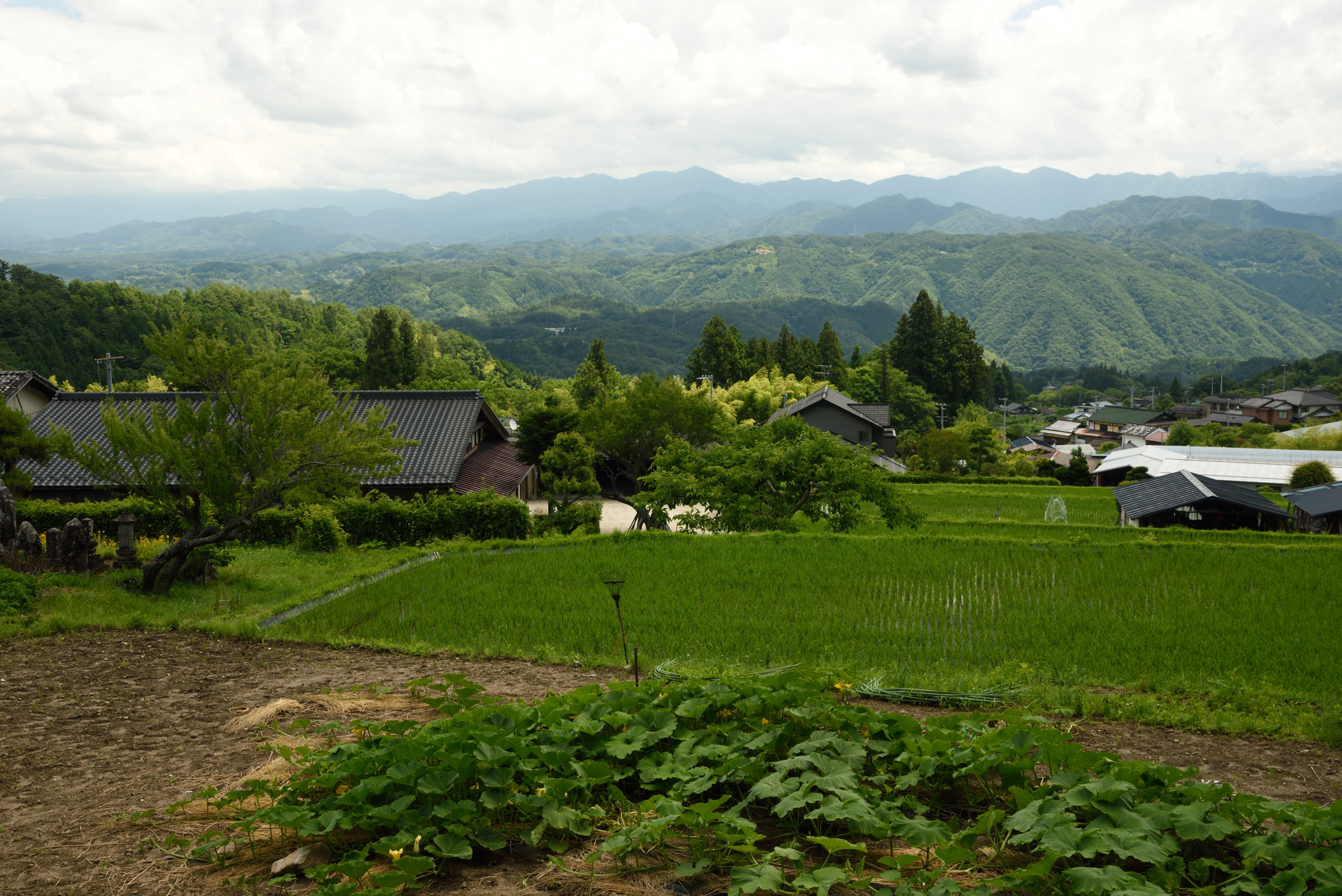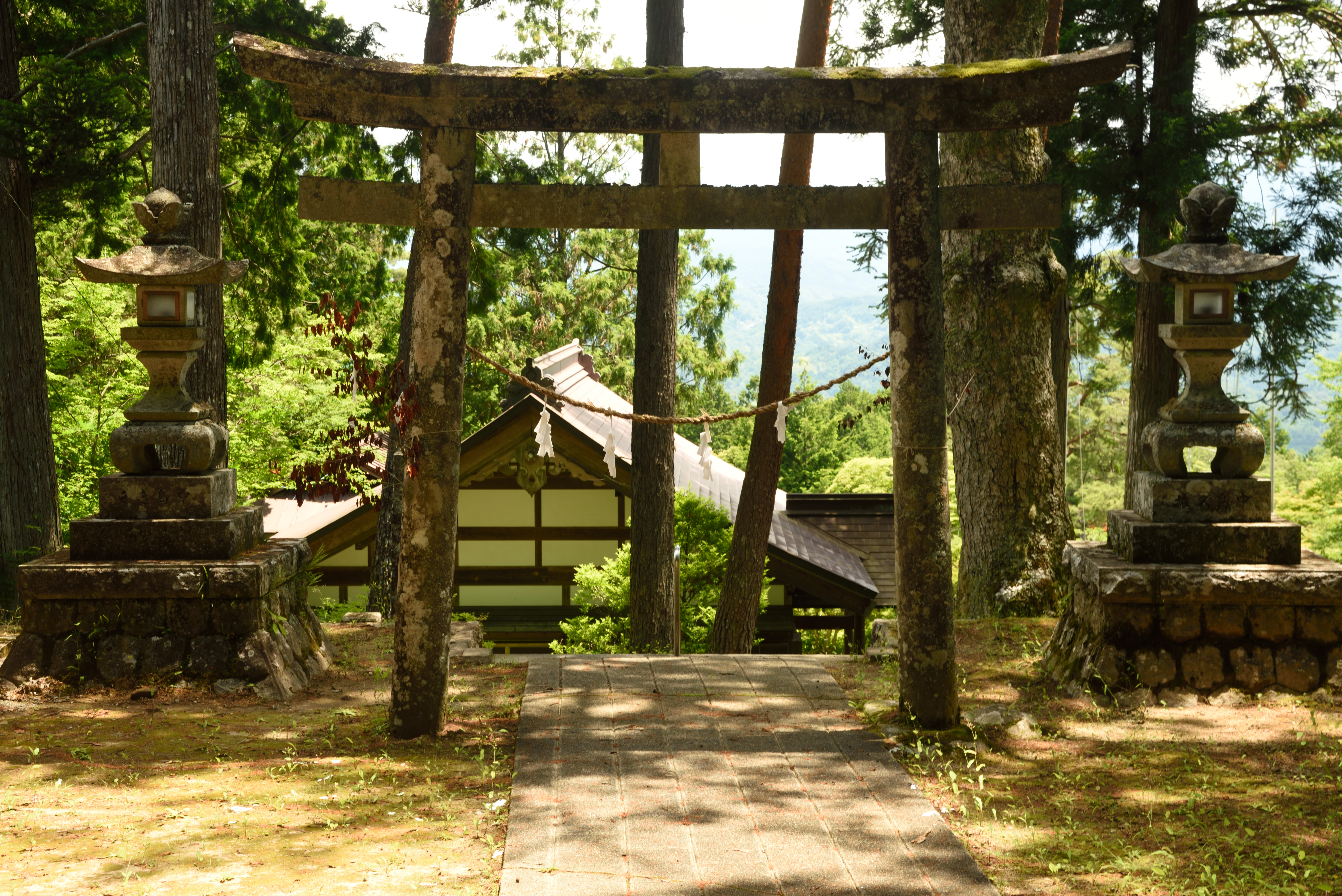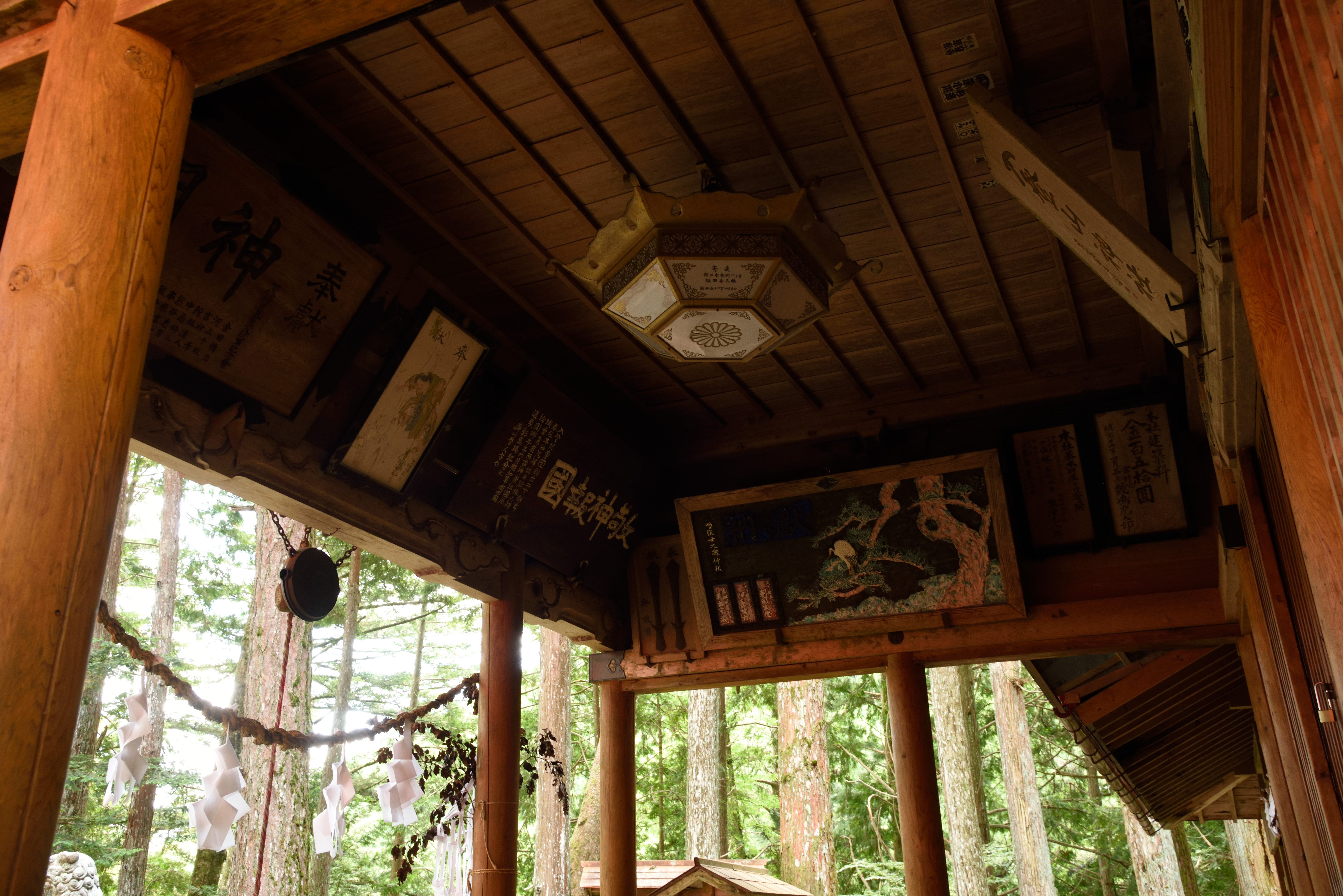 下條村を散策 2020/6/21(6年前) 写真, 甲信越, 長野 そば畑の近くに「入登山神社」への案内板があったので行ってみました. 本殿・拝殿.鮮やかな朱塗りの屋根です. 軒下には立派な絵や額が飾られていました. 拝殿から参道を撮影. そば畑から帰る途中の光景. 眺めがよいです.