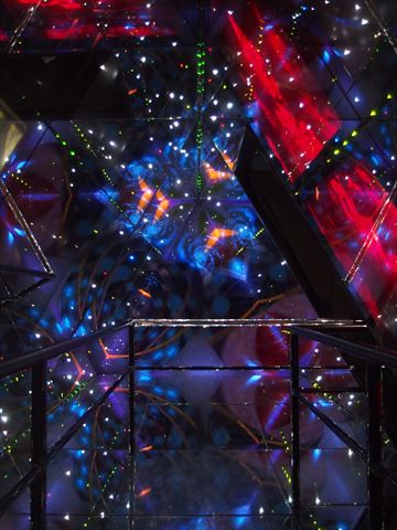 こちらは入口.この巨大万華鏡は人が入れるもので,中の様子が上のテレビに映っています.1グループずつ入るため時間がかかります.