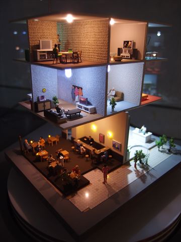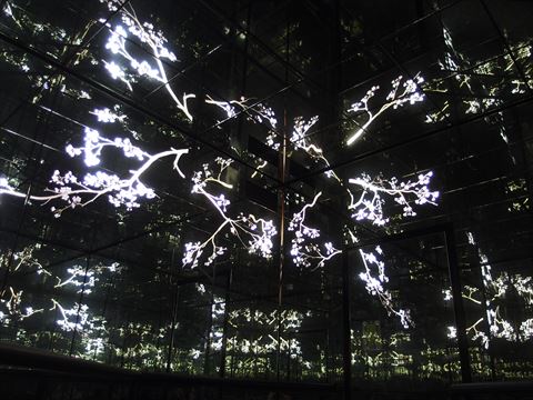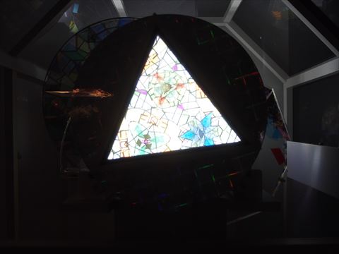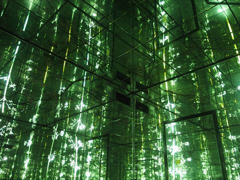 展示コーナーの目立たないところにドアがあり,入ってみるとまたも鏡の部屋で,映像と音楽が流れ始めました.