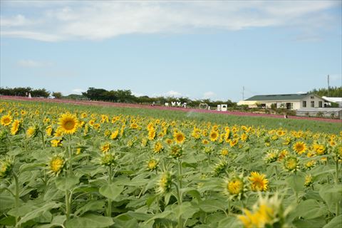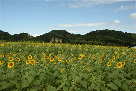 観光農園のひまわり 2020/8/11(6年前) 写真, 愛知, 日記, 東海 海の幸魚虎で朝8時からの朝食を食べ,8時半には出ました. まずは近くにありひまわり畑があるという観光農園花ひろばへ行きました. 入ってすぐのエリアは養生中. コキアがありました.秋には真っ赤に色づくのでしょう. ひまわり畑は入って左にしばらく歩くとありました. エリアは広く,まだ咲いていないエリアもすでに咲き終わったエリアもありました. そしてこちらが今回見頃のひまわり畑. 入園して見た空は雲勝ちでしたが,ひまわりに向かって見る空は青空でよかったです. おけに浮かべたひまわりの花.