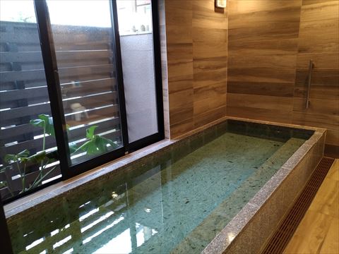 浴場の前のらんちゅうの水槽.