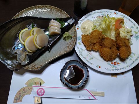 そこで頼んだのは,平貝の刺身と大あさりのフライ.