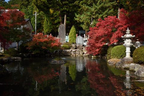 鳩ヶ嶺八幡宮 2020/11/8(5年前) 日記, 甲信越, 長野 湯~眠をチェックアウトし,季節がら紅葉を見ながら帰ります. 神社に紅葉があるだろうと思い,まずは近くにある鳩ヶ嶺八幡宮に行ってみました. 入口の池にありました.ただ紅葉はここくらいでした. この神社の創建は鎌倉期.立派な門や本殿でした.