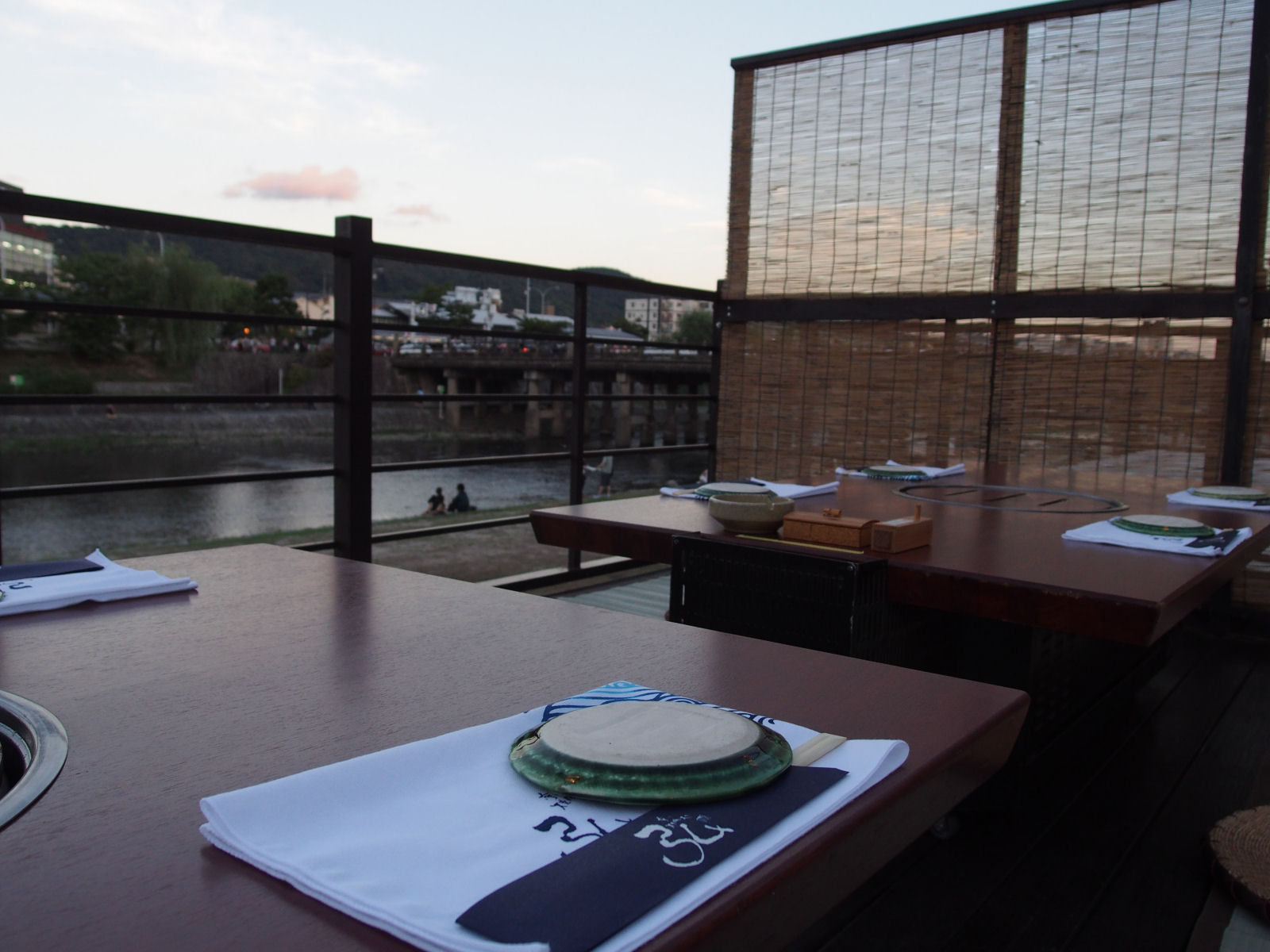 鴨川に隣接するロケーションで,大人数のため納涼床を貸切での食事でした.