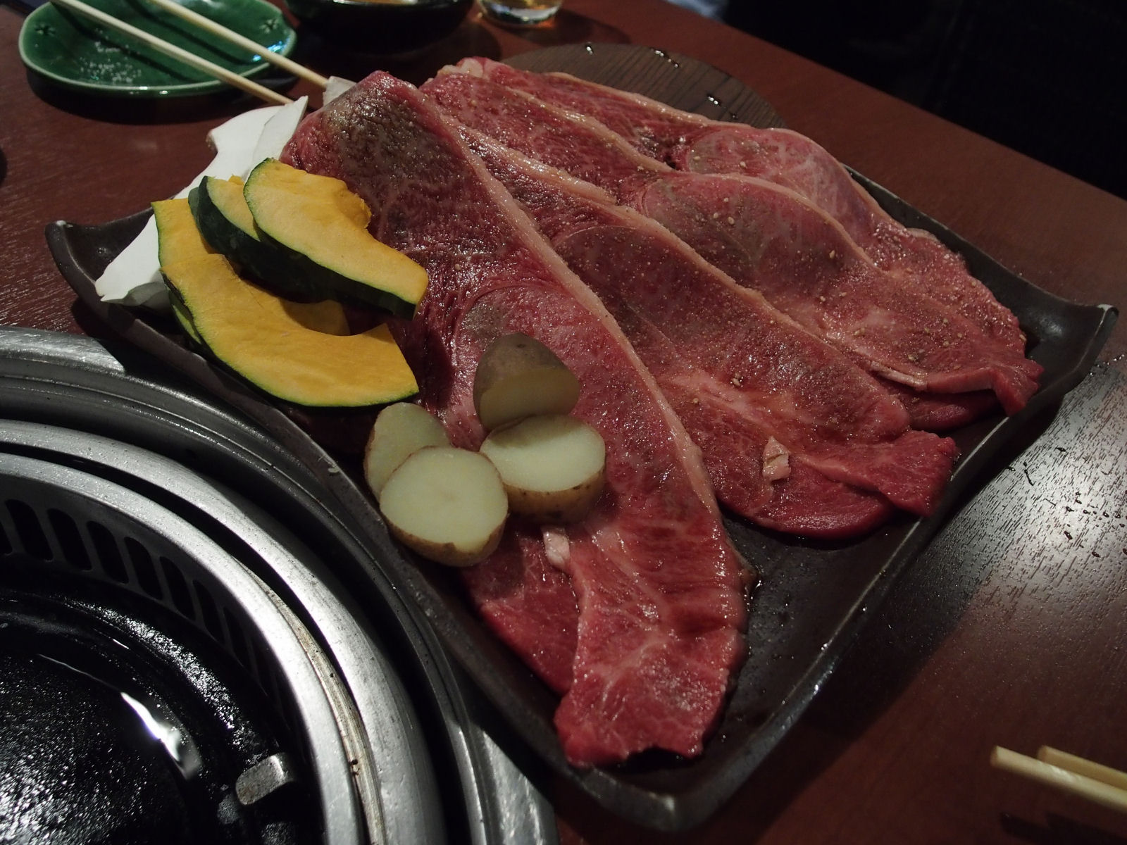 飲み会なので人が移動するためその隙に放置された肉を食べ続けていたら,脂がだんだんきいてきて食べられなくなる程度に堪能しました.