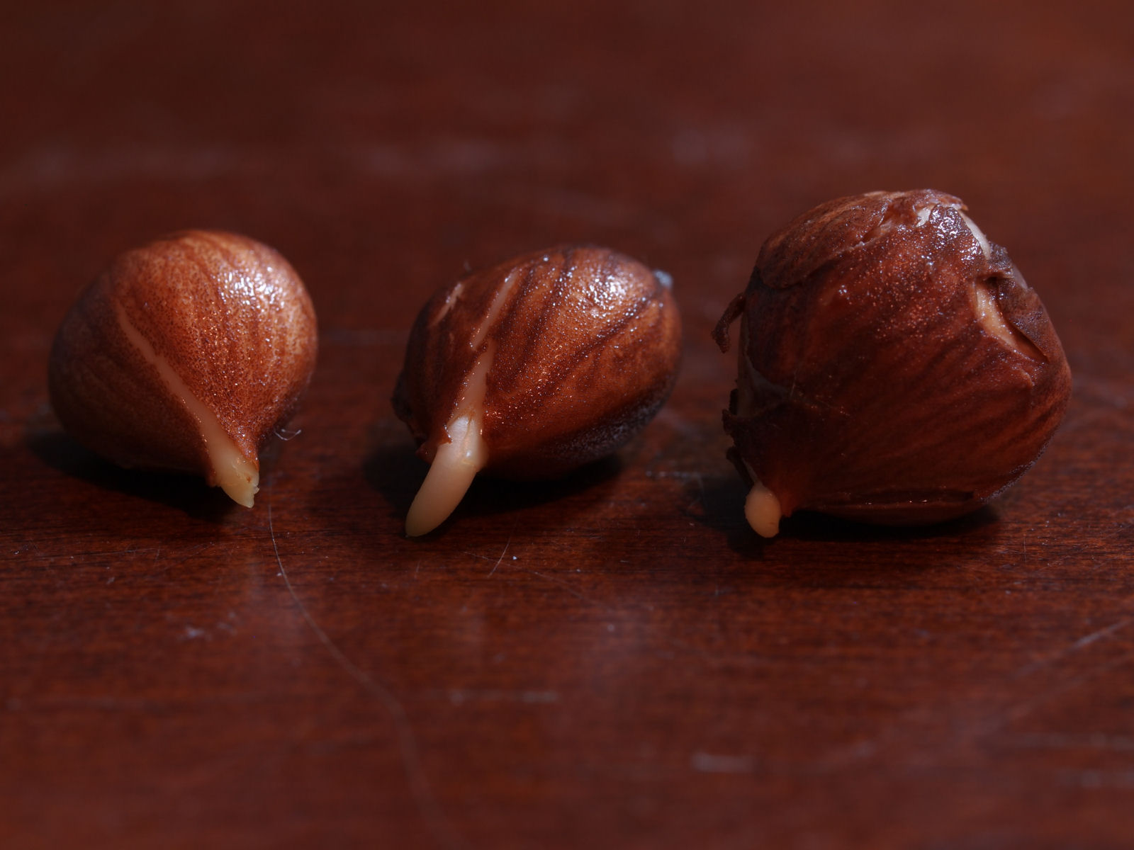 殻を割ってない種子はまだ発根が見られていません.しばらく後か冬の終わりかに発根するのでしょう.