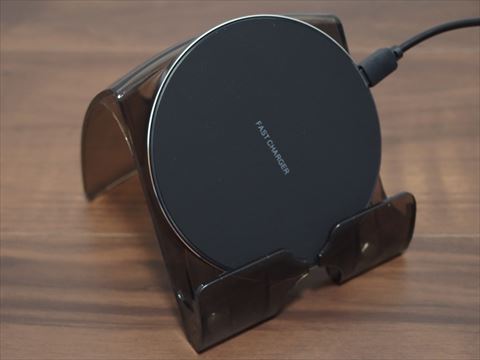 ワイヤレス充電器だけ買ってスマホの後ろにプラスチック越しに貼り付ければ自作ワイヤレス充電スタンドができるかと思い充電器を買ってみましたが,別に後ろから貼り付けなくても一緒に置けました.